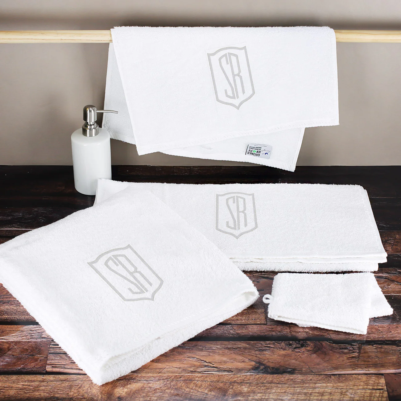 Hochwertiges, weißes Handtuch Set mit Initialen