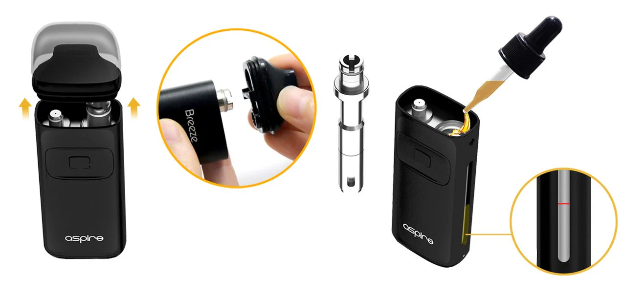 Aspire Breeze Kit ist das neueste All-in-One-Gerät, das ein kompaktes und ergonomisches Design verwendet, egal wie Sie halten oder greifen. Es fühlt sich gut in der Hand an. Der Breeze hat einen eingebauten nachfüllbaren Verdamfer, der 2 ml Saft enthält und den TPD – Vorschriften entspricht. Es nutzt auch die U-Tech-Coil, die Ihnen einen geschmackvollen vape gewährleistet. Nicht nur das, seine Auto-Feuer-Funktion fügt noch mehr Bequemlichkeit zu Ihrem täglichen Dampfen, keine Notwendigkeit, den Feuerknopf zu drücken, nur von der Mundstück einzuatmen, und es wird für Sie arbeiten. Der Feuerknopf hilft auch, die Breeze weiter zu navigieren. Zusätzlich zu seiner Einfachheit und seinem gut aussehenden Design, ist der Breeze auch super einfach zu bedienen, einfach von der Mundstücke ohne den Feuerknopf zu drücken, die Brise fängt an zu arbeiten. Stellen Sie sicher, dass der Breeze vor dem Einatmen mit Saft gefüllt wurde.