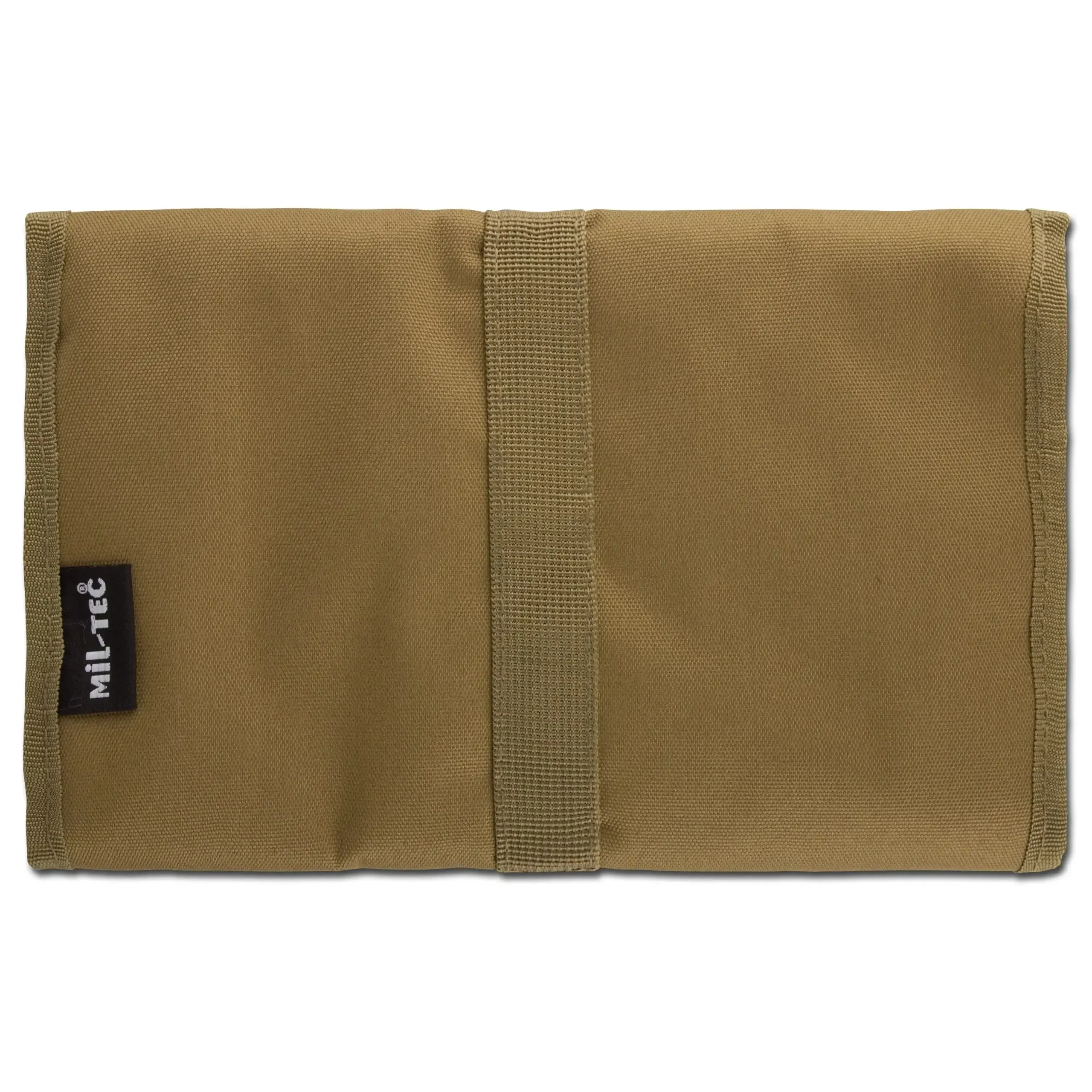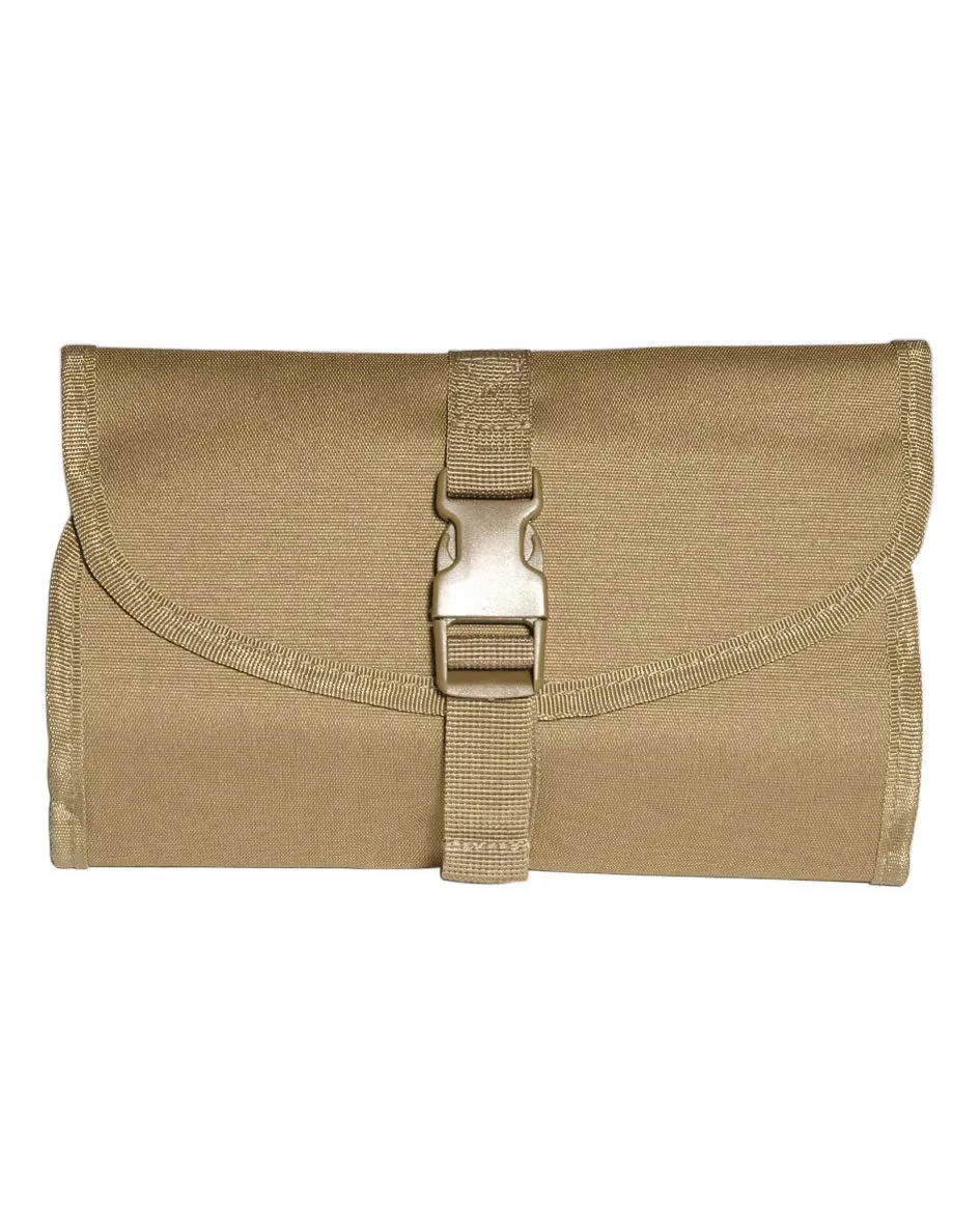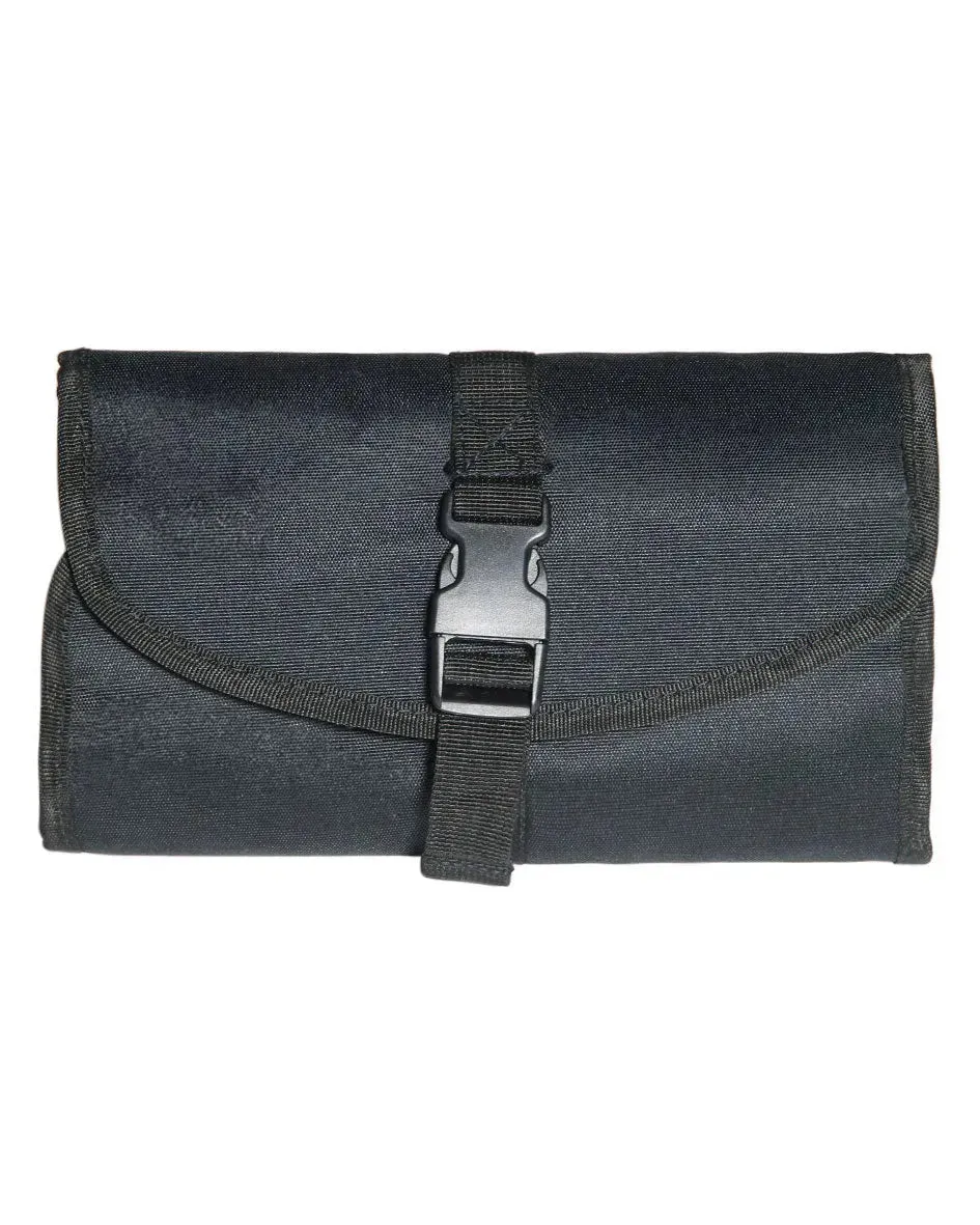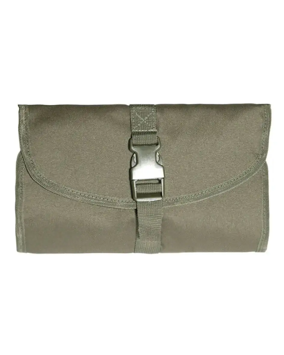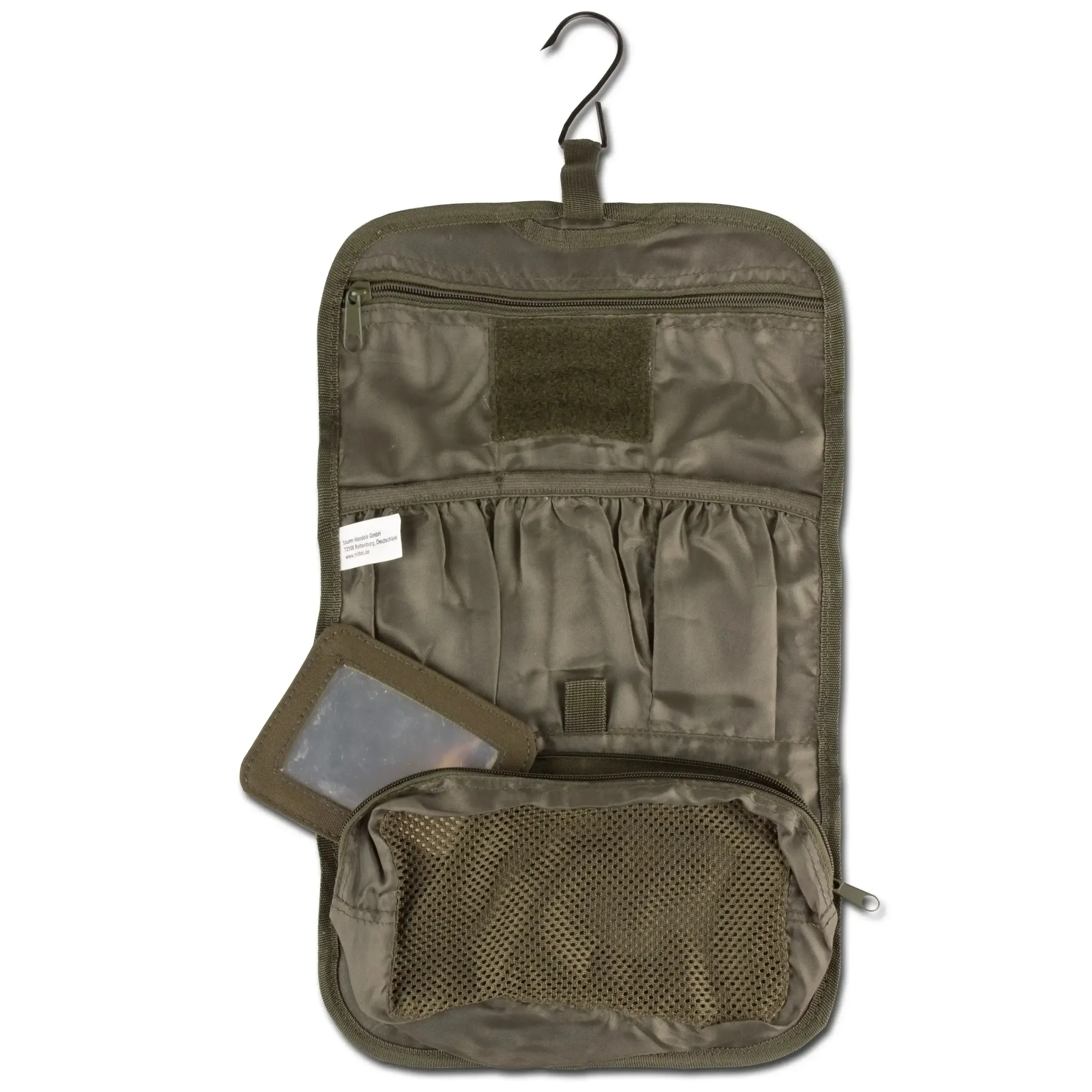 Dieser Kulturbeutel bietet viele Aufbewahrungsmöglichkeiten. 1 großes RV Fach mit Klettfläche zum Anbringen des mitgelieferten Spiegels, 3 aufgesetzte Fächer mit Gummizug sowie ein RV Netzfach zum Verstauen weiterer Gegenstände sind vorhanden. Ein Haken zum Aufhängen der Tasche an widrigen Orten ist in einer Lasche am oberen Ende der Tasche angebracht. Verschlossen wird der Beutel durch eine praktische Steckschließe mit längenverstellbarem Kompressionsriemen.