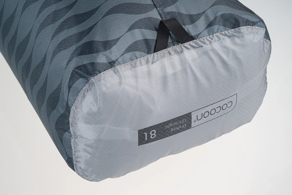 Wasserfester Packsack mit praktischem Roll-Top Verschluss zur trockenen und organisierten Aufbewahrung von Ausrüstungsgegenständen beim Wassersport und im Rucksack. Aussen silikonisiert, innen PU-beschichtet mit getapten Nähten (PFAS frei). Mit innovativem All-Over-Print.