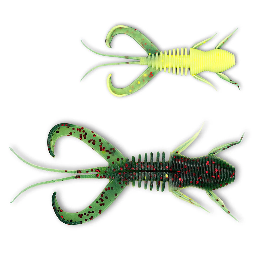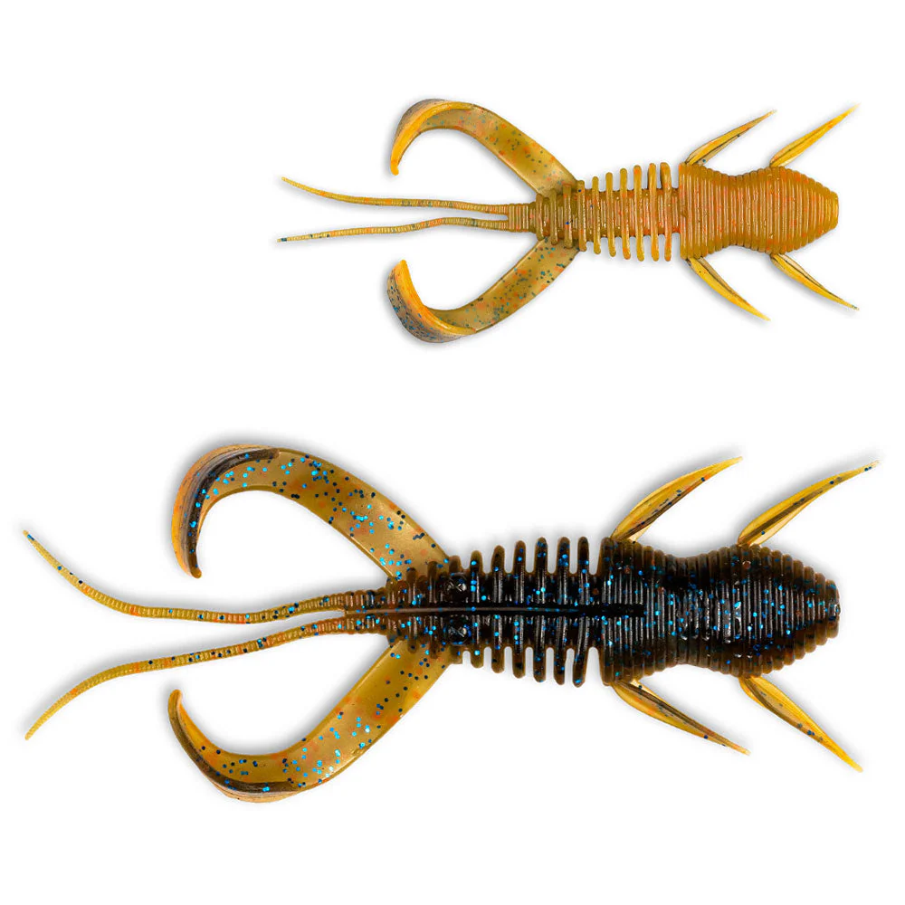 Die Krebsimitate aus dem Hause Monkey Lures kommen in acht verschiedenen Dekoren und mit filigran ausgearbeiteten Extremitäten daher. Die länglichen, schmalen Fühler spielen im Wasser verführerisch, während die Beinchen vibrieren und so für Mikrovibrationen sorgen. Diese beiden Features sind besonders am Drop Shot Rig interessant, wenn der Köder schwebend im Wasser steht und schon durch minimalste Strömung und Zupfer animiert wird.