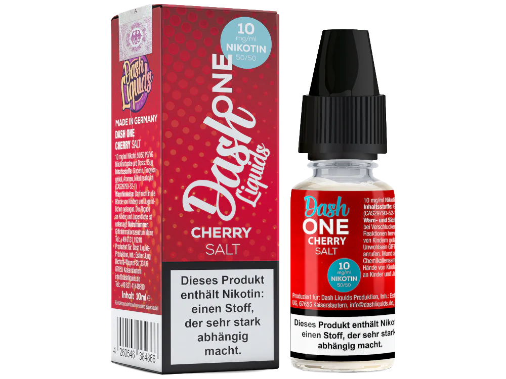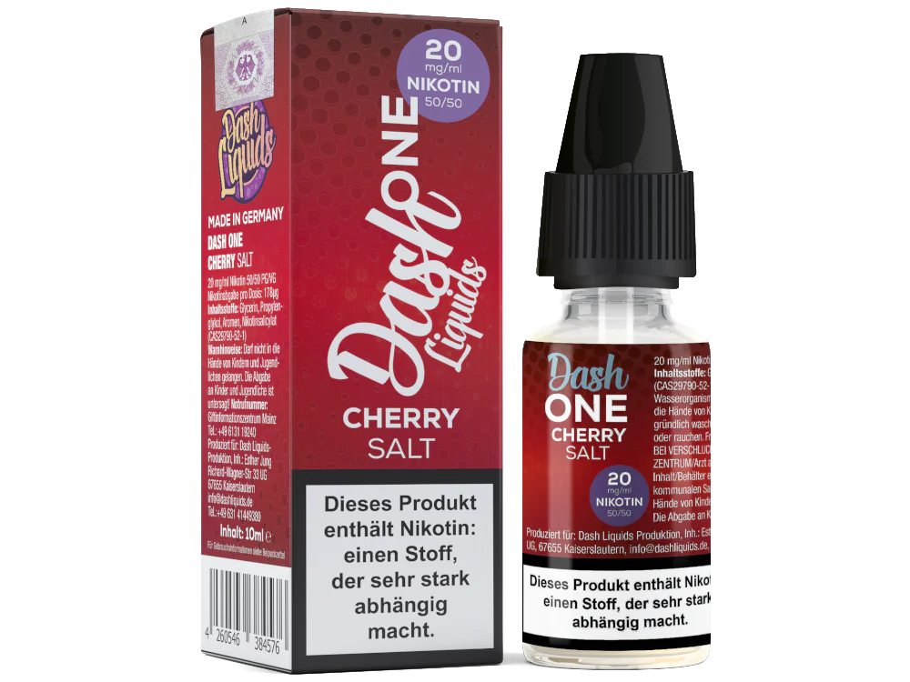 Das Cherry Nikotinsalz Liquid aus dem Hause Dash Liquids ist Teil der One-Serie. Beim Dampfen schmeckt es nach Kirsche. Sie erhalten pro bestellter Einheit eine 10 ml Flasche mit 10 ml Inhalt. Das Nikotinsalz Liquid können Sie mit 10 mg/ml oder 20 mg/ml Nikotin dampfen. Es ist für den direkten Gebrauch in Ihrer E-Zigarette geeignet.Auszeichnung gemäß CLP-Verordnung (EG) Nr. 1272/2008