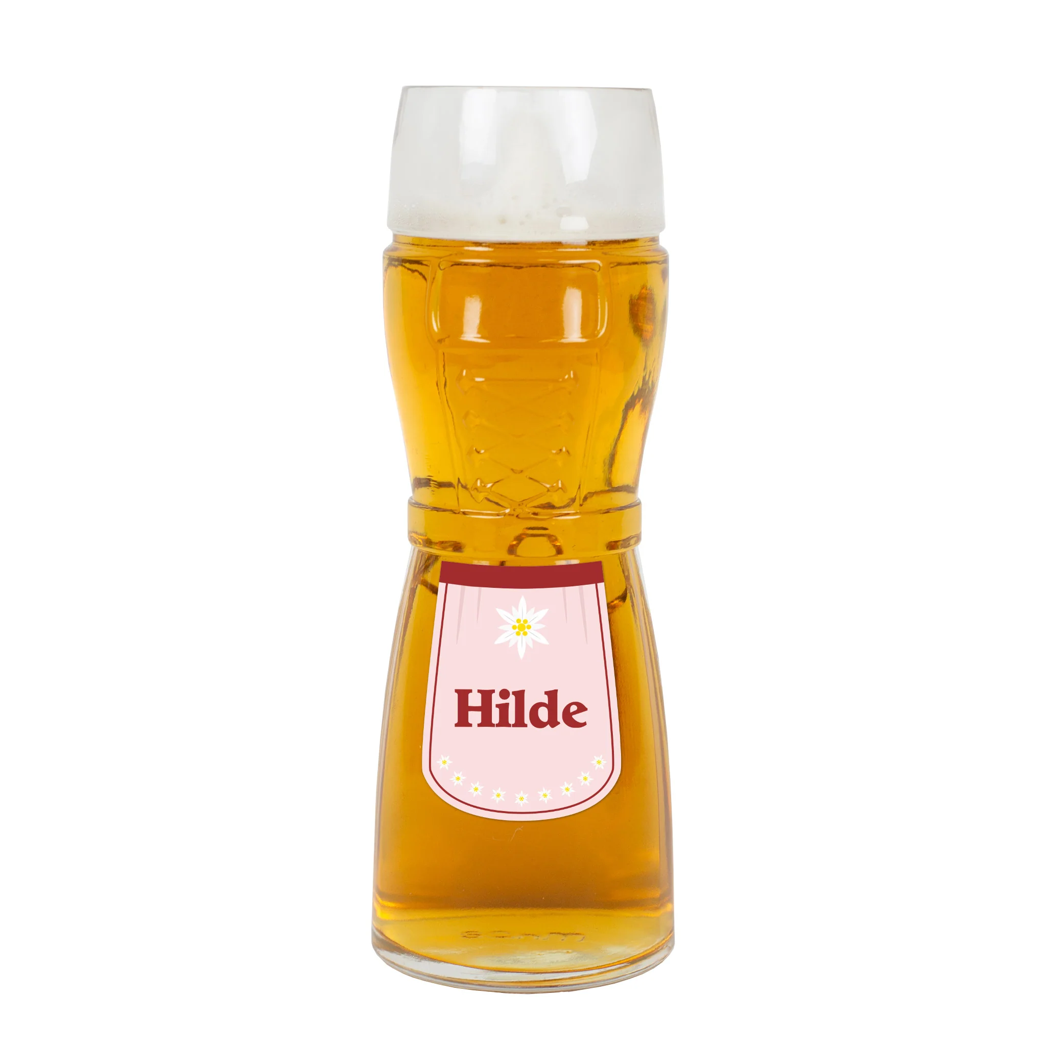 Dirndl-Bierglas mit Schürze, Edelweiß & Namensdruck