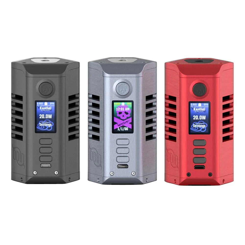 Der Odin DNA250c Akkuträger ist eine Zusammenarbeit von DOVPO, vaperz cloud und dem Youtube-Rezensenten Vaping Bogan. Der DOVPO Odin DNA250C Box Akkuträger verwendet den Evolv DNA250C Chip der bekannten Marke, stabil, mit hoher Konversionsrate und vollem Funktionsumfang, um die Bedürfnisse der meisten Spieler zu erfüllen. Und der DOVPO Odin DNA250C-Akkuträger wird von 21700/20700/18650 Batterien mit zwei Generationen und einer maximalen Leistung von 200W angetrieben, was Ihnen eine lange Lebensdauer und eine längere Akkulaufzeit garantiert. Außerdem gibt es ein Vollfarbdisplay von 0,96 Zoll und Sie können zwischen Benutzermodi mit variabler Leistung, benutzerdefinierter Kurve und Temperaturregelung wählen. Die Bildschirme sind auch mit einem Bogan-Thema versehen. Er verfügt über ein 510er-Mundstück mit Platz für bis zu 30mm-Verdampfer, bei denen Sie keine Kompromisse eingehen müssen, und die untere Ladeklappe für die Batterie trägt zu seiner Bequemlichkeit und unkomplizierten Ästhetik bei.