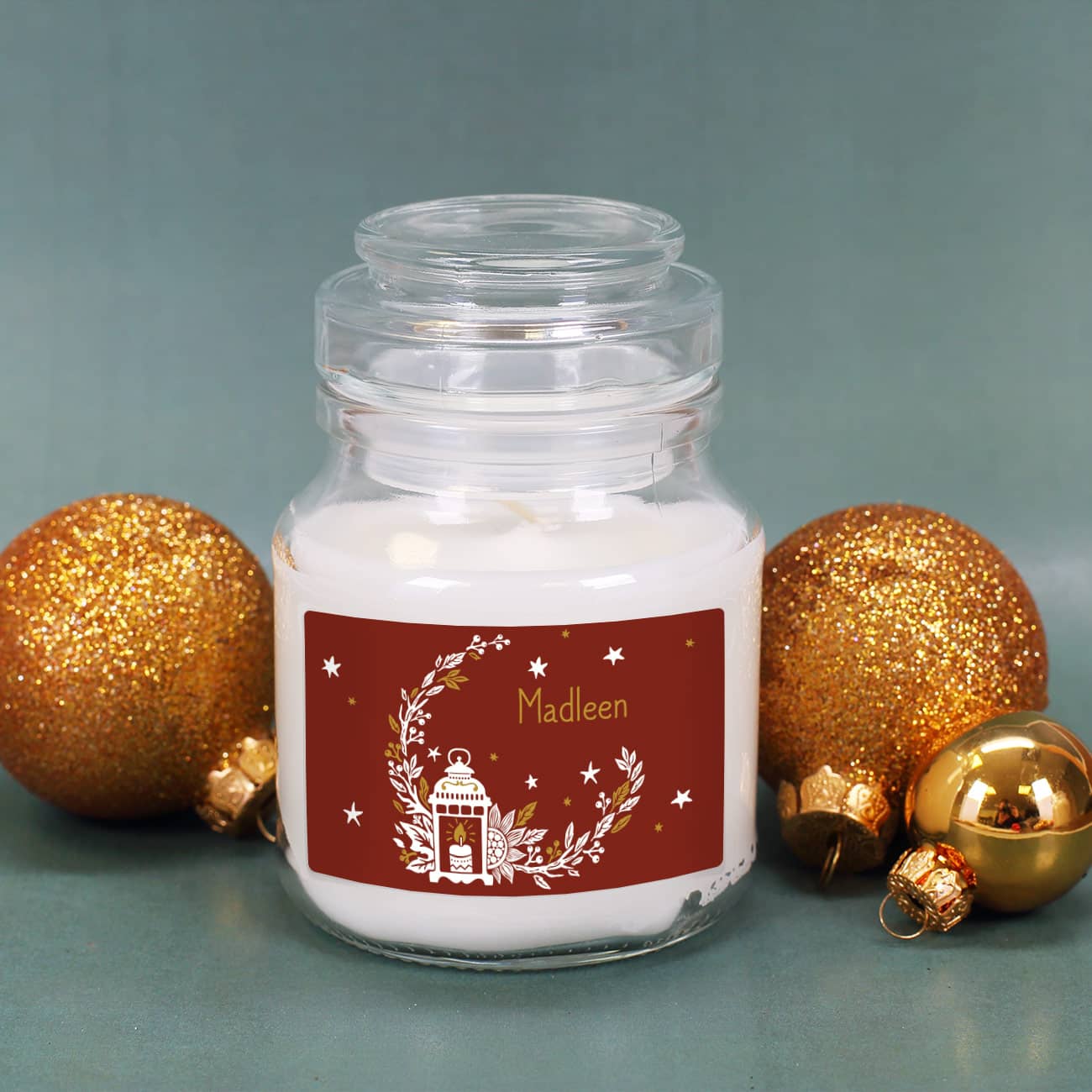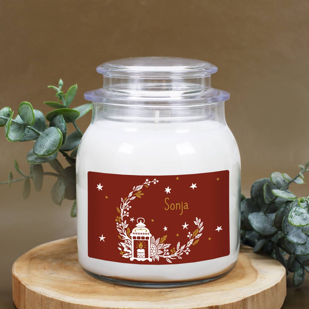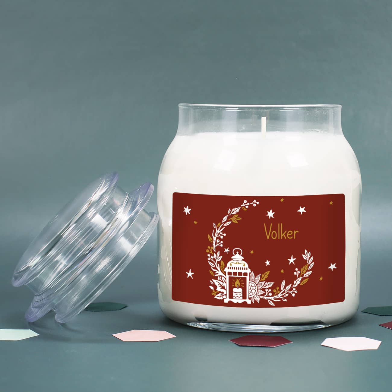 Ein Raumduft in Form einer persönlich gestalteten Duftkerze wie dieser wird überall eine magische Weihnachtsstimmung verbreiten! Der frische Duft in Kombination mit dem winterlichten Etikett macht diese Duftkerze zu einem wunderbaren Nikolausgeschenk, Wichtelgeschenk oder Weihnachtsgeschenk. Das absolute Highlight ist, dass das festliche Laternen Motiv mit einem Namen nach Wusch personalisiert wird, so dass Sie etwas Einzigartiges verschenken, das man so kein zweites Mal im Leben bekommt. Selbstverständlich können Sie die Duftkerze in dem robusten Deckelglas auch an sich selbst als schicke Weihnachtsdekoration schenken! So kann jedem Raum selbst in der Weihnachtszeit ein persönlicher Charme verliehen werden.