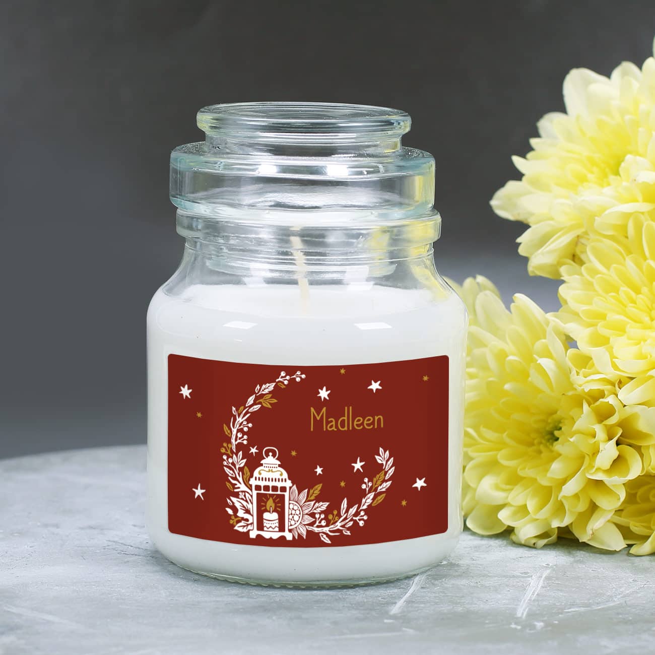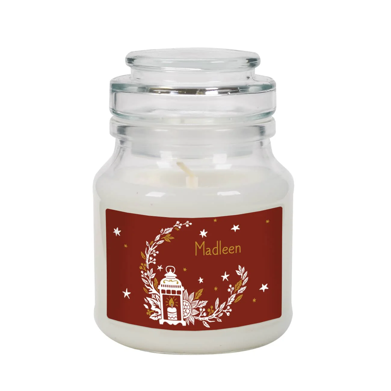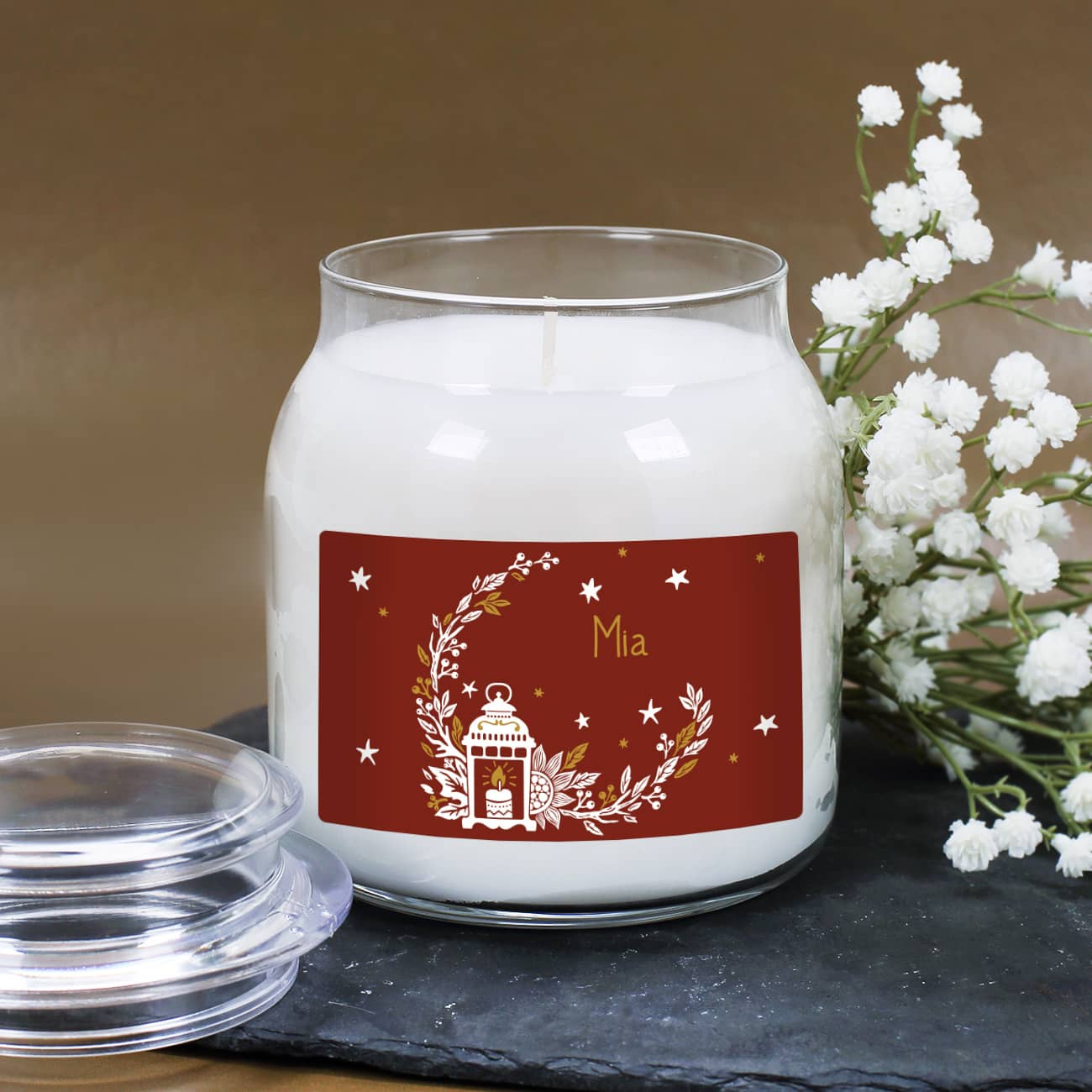 Ein Raumduft in Form einer persönlich gestalteten Duftkerze wie dieser wird überall eine magische Weihnachtsstimmung verbreiten! Der frische Duft in Kombination mit dem winterlichten Etikett macht diese Duftkerze zu einem wunderbaren Nikolausgeschenk, Wichtelgeschenk oder Weihnachtsgeschenk. Das absolute Highlight ist, dass das festliche Laternen Motiv mit einem Namen nach Wusch personalisiert wird, so dass Sie etwas Einzigartiges verschenken, das man so kein zweites Mal im Leben bekommt. Selbstverständlich können Sie die Duftkerze in dem robusten Deckelglas auch an sich selbst als schicke Weihnachtsdekoration schenken! So kann jedem Raum selbst in der Weihnachtszeit ein persönlicher Charme verliehen werden.