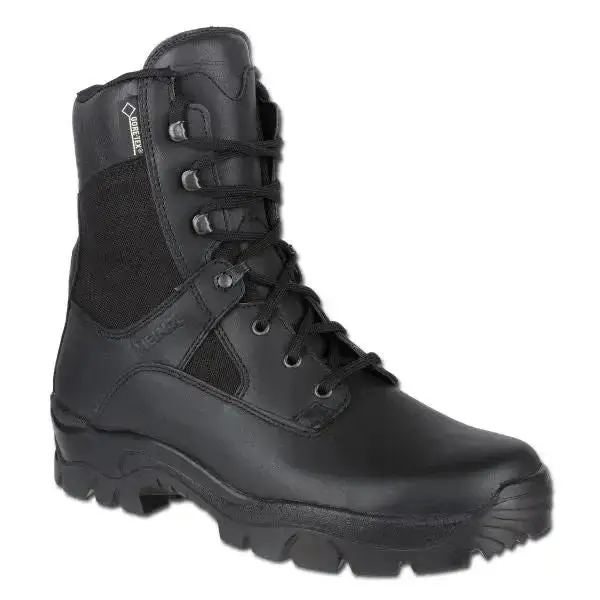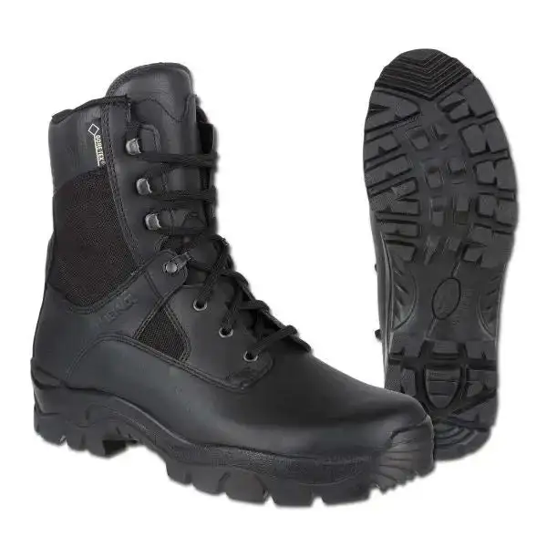Der Einsatzstiefel Eagle Pro GTX der deutschen Firma Meindl ist ein neu entwickelter Einsatzstiefel mit sportlicher Optik, der für nahezu jedes Gelände geeignet ist. Er bietet guten Gehkomfort und ein natürliches Abrollverhalten. Das Obermaterial aus waterproof Leder hält Wasser zuverlässig ab und ist für gute Belüftungseigenschaften mit einer Gore Membran versehen. Der Fuß wird an der Ferse sicher im Schuh fixiert und die Gefahr umzuknicken vermindert. Der Derbyschnitt im Vorfußbereich sorgt für eine bestmögliche Anpassung des Stiefels. Das Fußbett mit Air-Active® Softprint Drysohle absorbiert und speichert die gesamte Fußfeuchte und trocknet schneller als übliche Materialien. Der Softprint Schaum passt sich exakt der Fußform an und dämpft Stöße über die gesamte Sohle. – antistatisch – Sohle öl- und benzinbeständig – Obermaterial: waterproof Leder – Innensohle: Air-Active® Softprint Drysohle – Meindl Multigrip®-Sohle – Gewicht: ca. 1,5 kg/paar, Enthält nichttextile Bestandteile tierischen Ursprungs