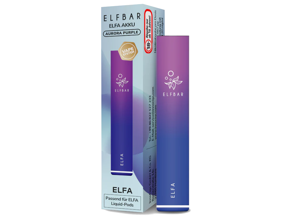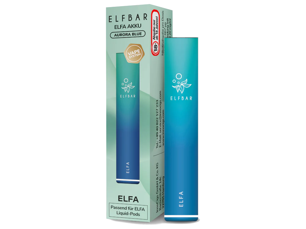 Der Elfa Akku ist mit den Elfa Pods kompatibel. Je nach Zugverhalten sind mit der Akkukapazität von 500 mAh mit dem Elfa Akku bis zu 600 Züge möglich. Die Feuertaste entfällt, da der Akku über eine Zugautomatik betrieben wird. Der USB-C-Anschluss ermöglicht es, den Akku mit neuer Energie zu versorgen.