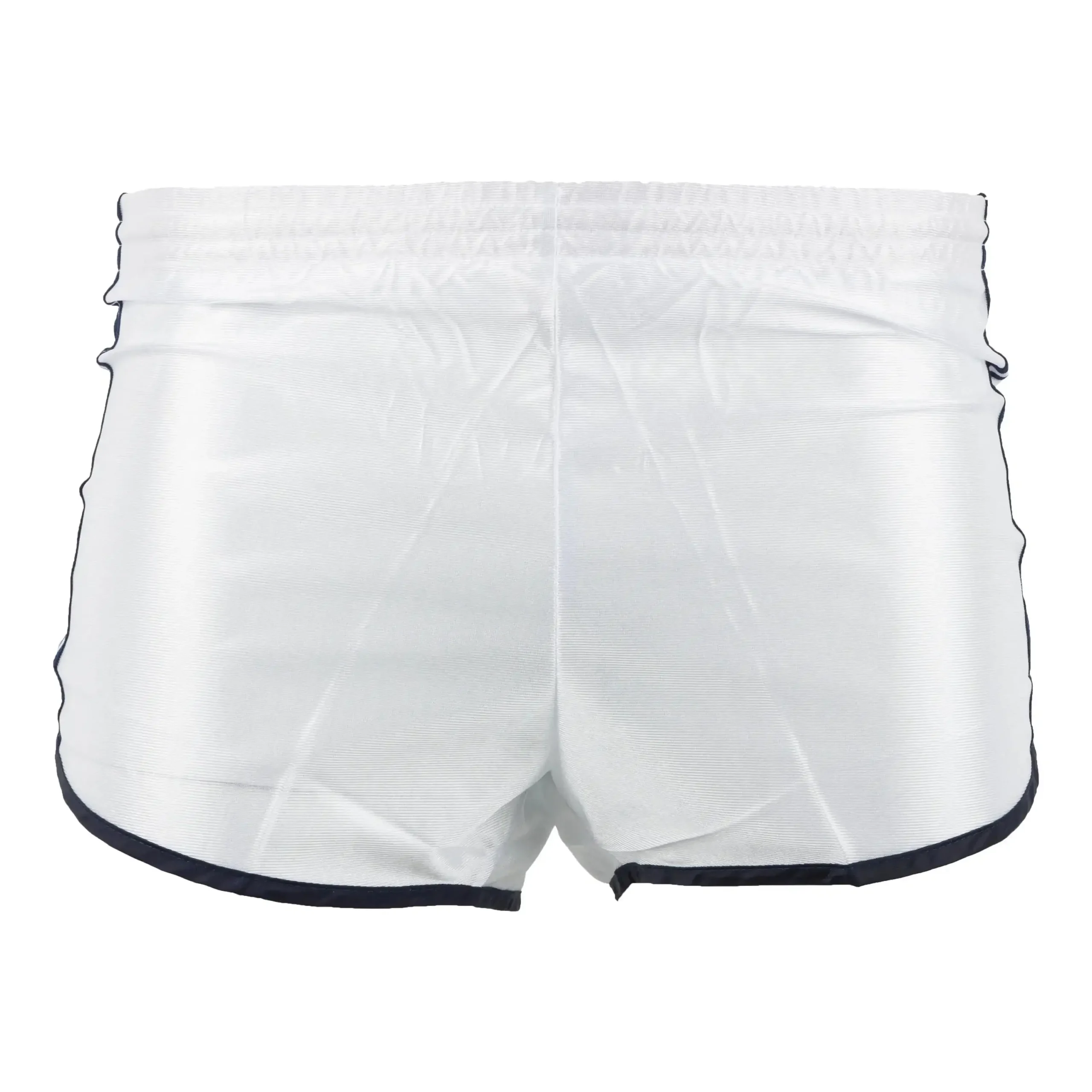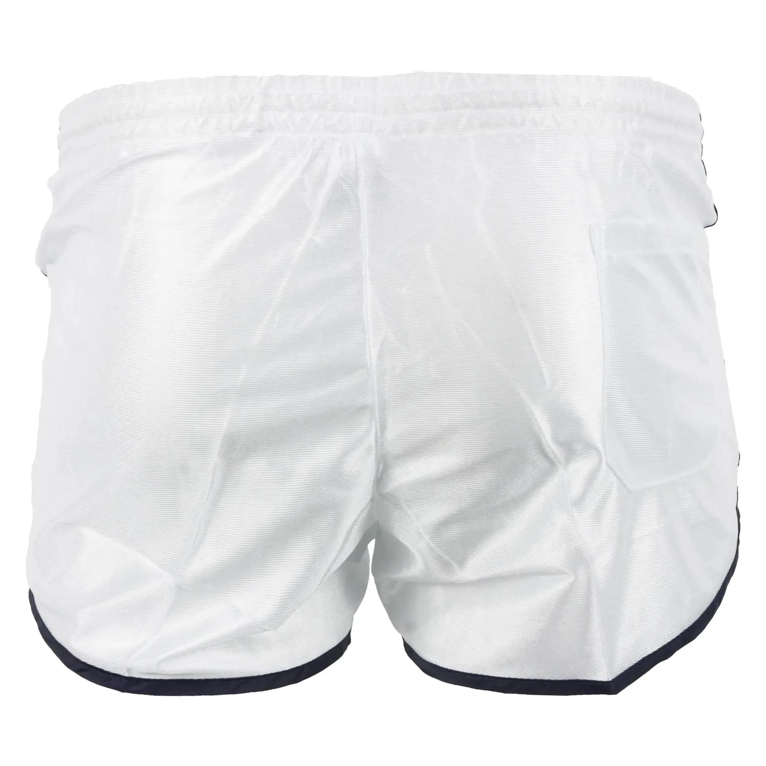 Sporthose der französischen Armee mit Beinschlitz und elastischem Bund in neuwertigem Zustand. Weiße Hose mit blauen Seitenstreifen.