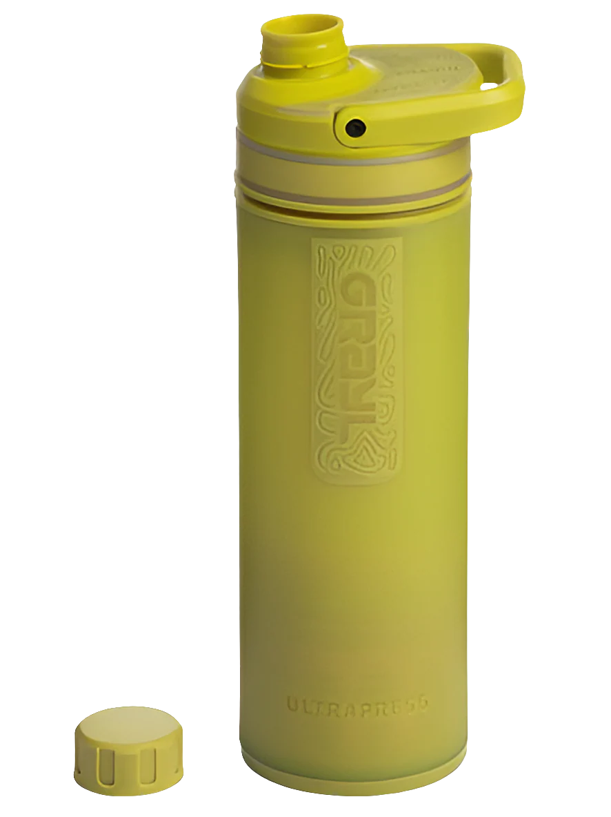 Der neue Grayl® Ultrapress Purifier kommt mit vielen praktischen Features wie beispielsweise einem klappbaren Tragegriff oder einem wiederverschliessbaren, auslaufsicheren SimpleVent Trinkverschluss. Zudem wurden die neuen Ultrapress Purifier mit diversen rutschfesten TopoGrip-Oberflächen und einem ergonomischen SoftPress-Polster ausgestattet.