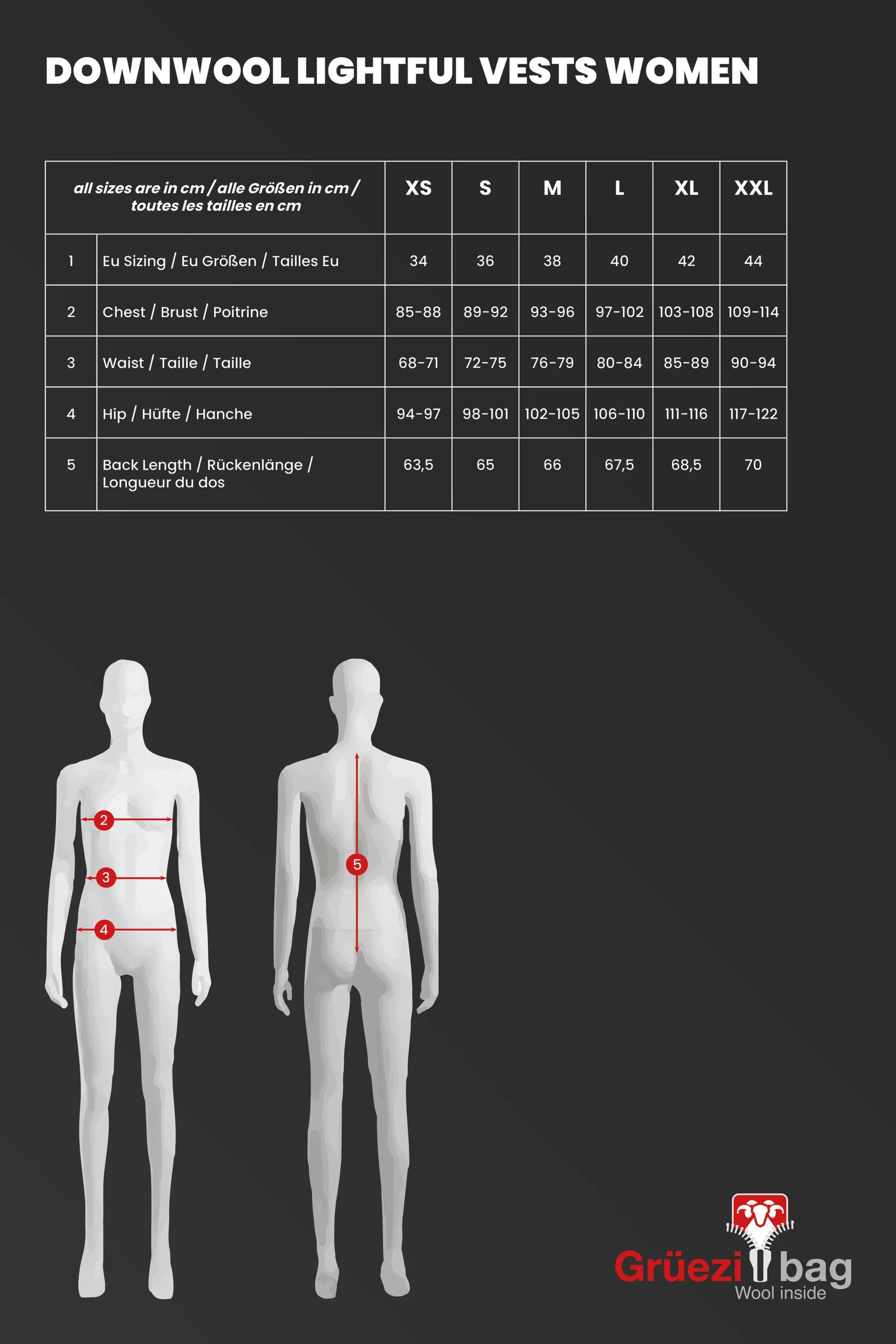 • DownWool®: Im Oberkörper und Rücken – für gezielte Wärmeleistung