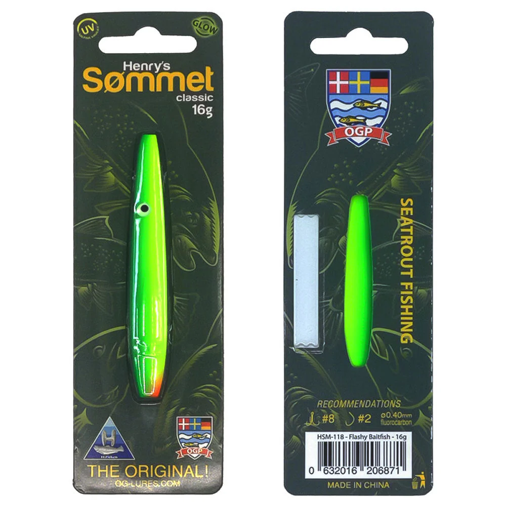 Der OGLures Henry’s Sømmet ist ein weiterer Klassiker aus Dänemark. Dieser Inline-Blinker immitiert mit seinem Laufverhalten einen Sandaal, einem der beliebtesten Beutefische der Meerforellen. Kein Wunder, dass dieser Köder unter den Mefo-Anglern extrem beliebt ist und regelmässig für tolle Fänge sorgt. Dabei eignet er sich besonders gut für eine etwas schnellere Führung mit gelegentlichen Spinnstopps. Da es ein Inline-Blinker ist, wird er auf ein Vorfach aufgefädelt. Empfohlen wird die Verwendung von 0,40er Fluorocarbon. Ans Ende kommt wahlweise ein Drilling oder Einzelhaken. Dadurch, dass der Haken nicht fest mit dem Köder verbunden ist, kann der Fisch den Köder schlechter loszuschütteln und die Aussteigerquote wird reduziert. Den OGLures Henry’s Sømmet gibt es in 2 verschiedenen Gewichten und neben Meerforellen überzeugt er auch als sehr effektiver Köder auf Hornhechte.