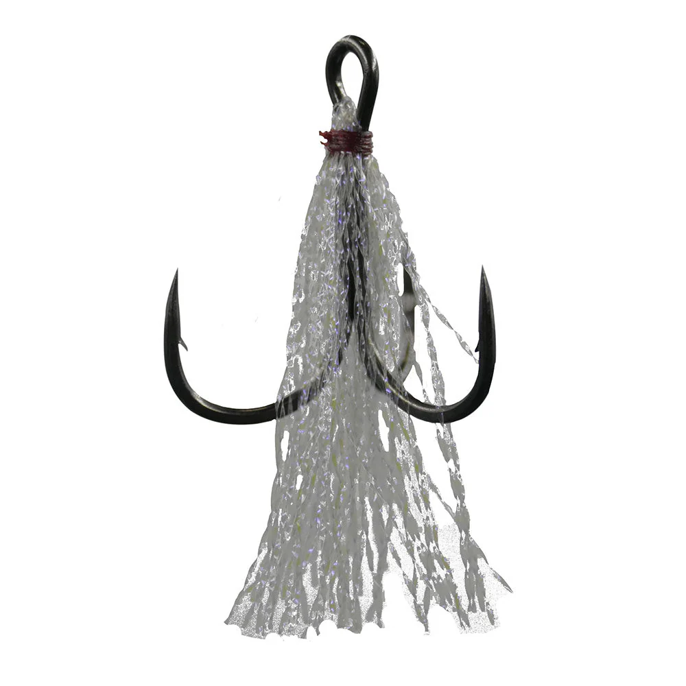 Der VMC Hybrid UV Drilling (7547UV) ist eine mit UV-Aktivität und Flash versehene Version des ebenfalls hier erhältlichen VMC 1X Strong Inline Drillinge (7547BN). Dieser sehr beliebte Drilling ist aus Hi-Carbon Flachstahl der Stärke 1X geschmiedet und mit einer eingebogenen, chemisch geschärften Needle Sharp Spitze versehen. Er hat einen kurzen Hakenschaft und das Öer liegt inline mit einer Hakenflunke. Dieser Drilling bietet bestes Hakverhalten und ist nun mit einer extra Portion Attraktivität versehen, die die Fängigkeit von Hardbaits oder Blinkern weiter erhöht. Dafür wurde der Haken mit UV Crystal Flash versehen, welches mit roter Wicklung am Hakenschaft fixiert ist. Der VMC Hybrid UV Drilling (7547UV) ist auch perfekt geeignet als Ersatzhaken für viele Popper, die von Hause aus schon mit Feder- oder Flash-Drilling versehen sind.