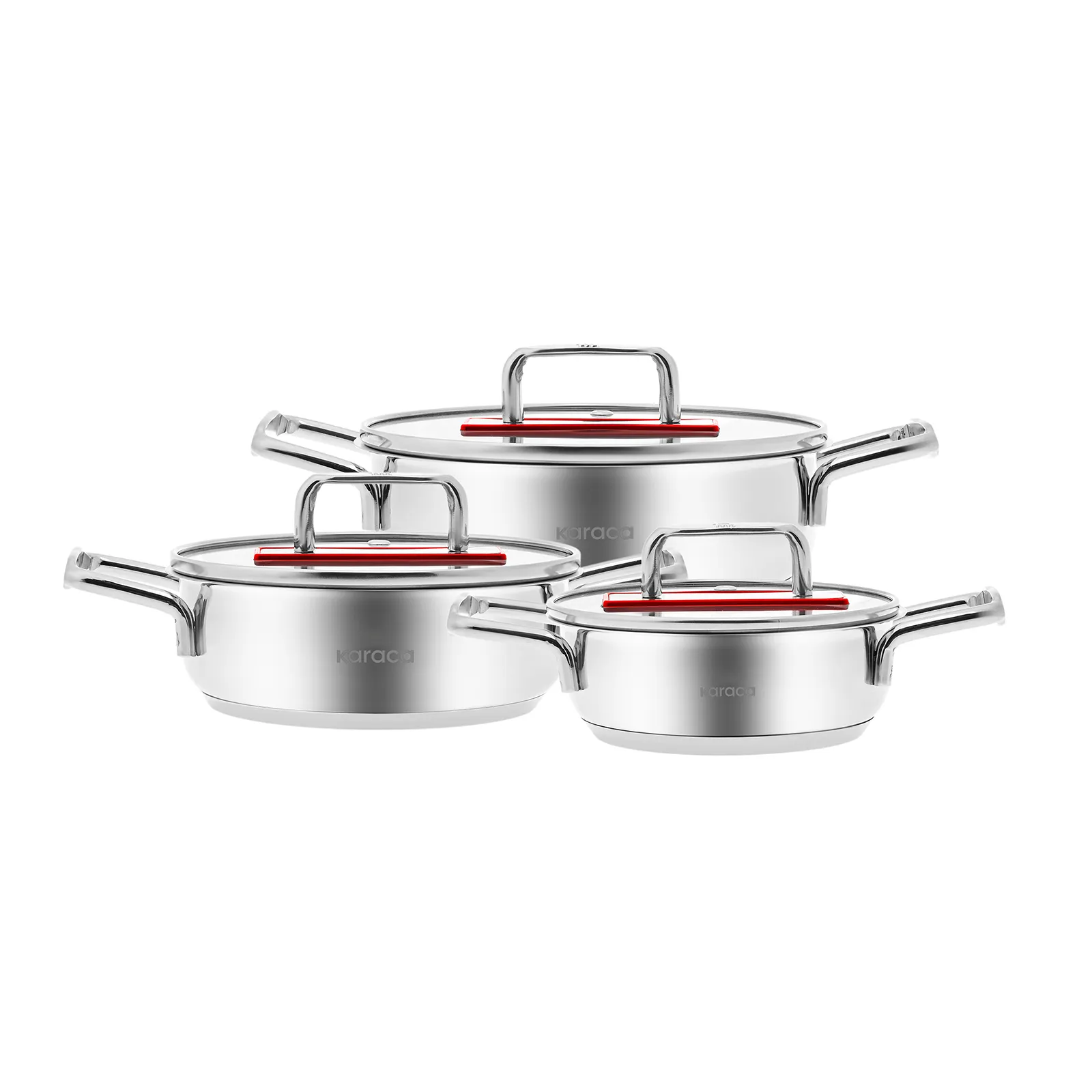 Karaca Arya 6-teiliges rotes Midi-Stahl-Kochtopfset