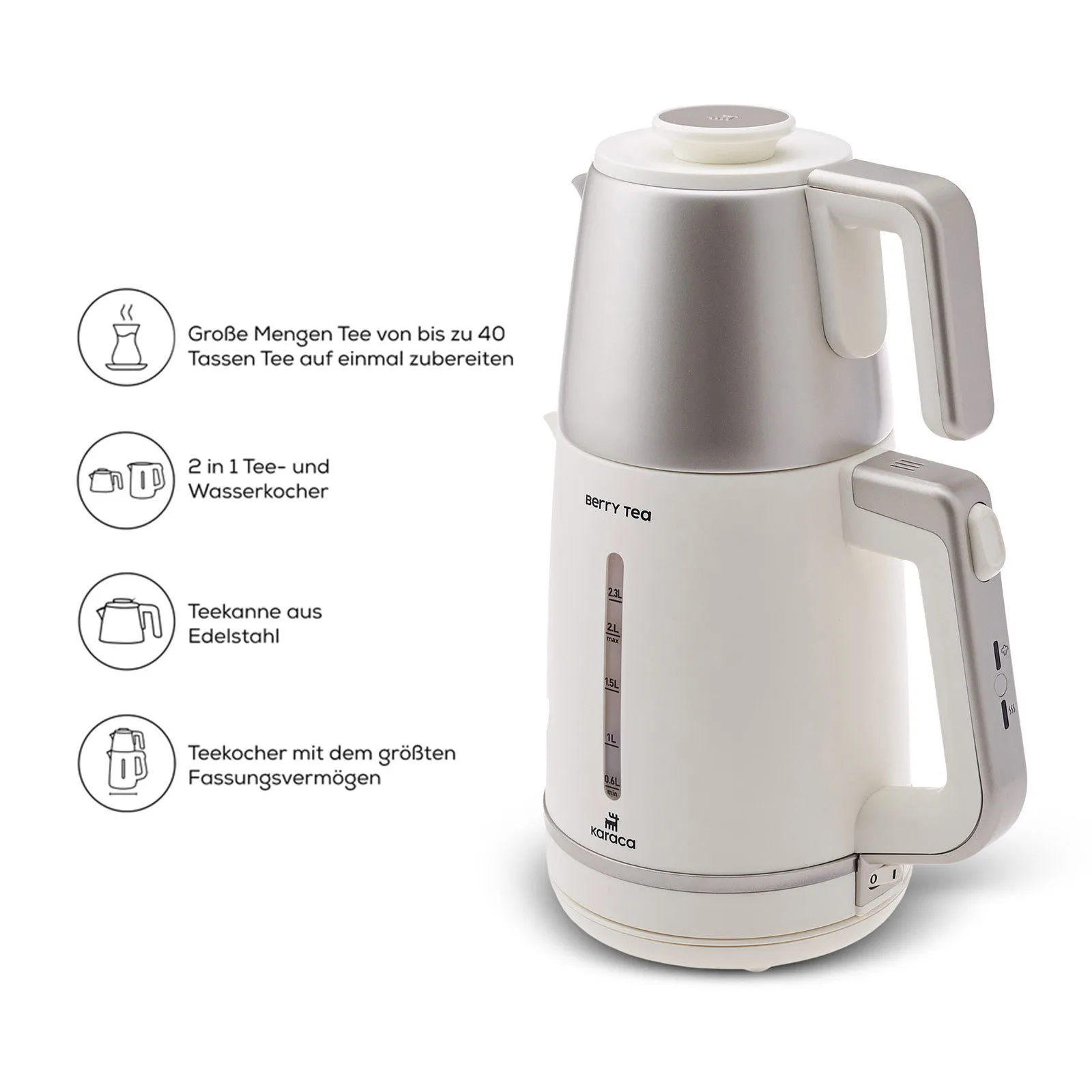 Karaca Berry Tea XL 2in1 Teekocher mit Stahleinsatz und Wasserkocher, Maulbeere, 1700W