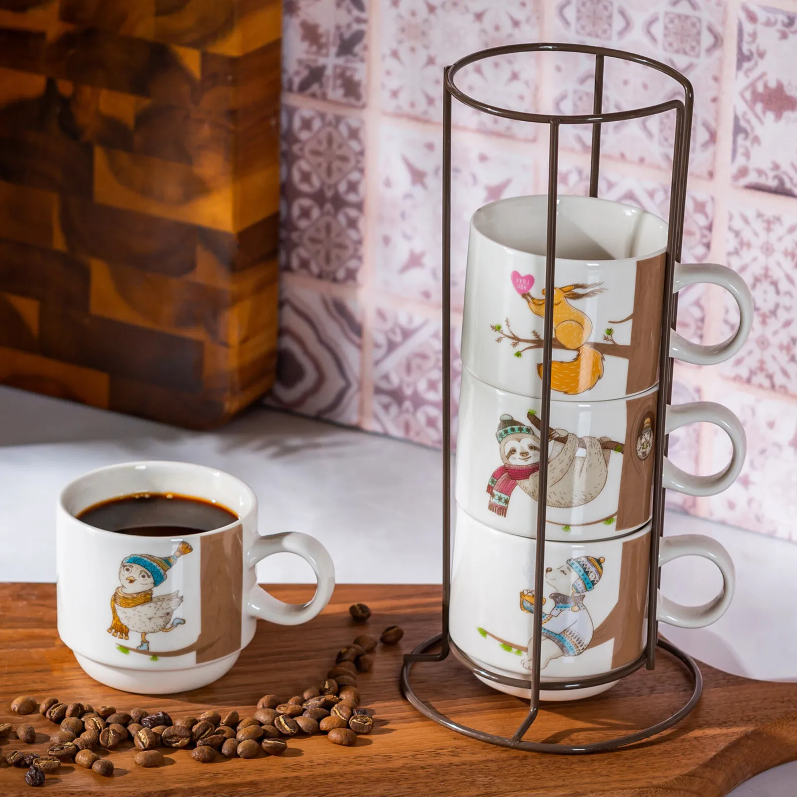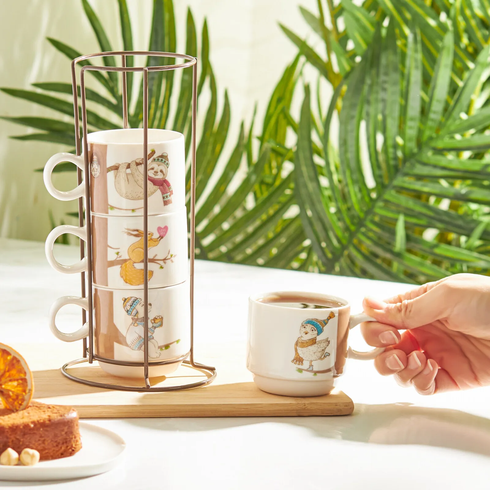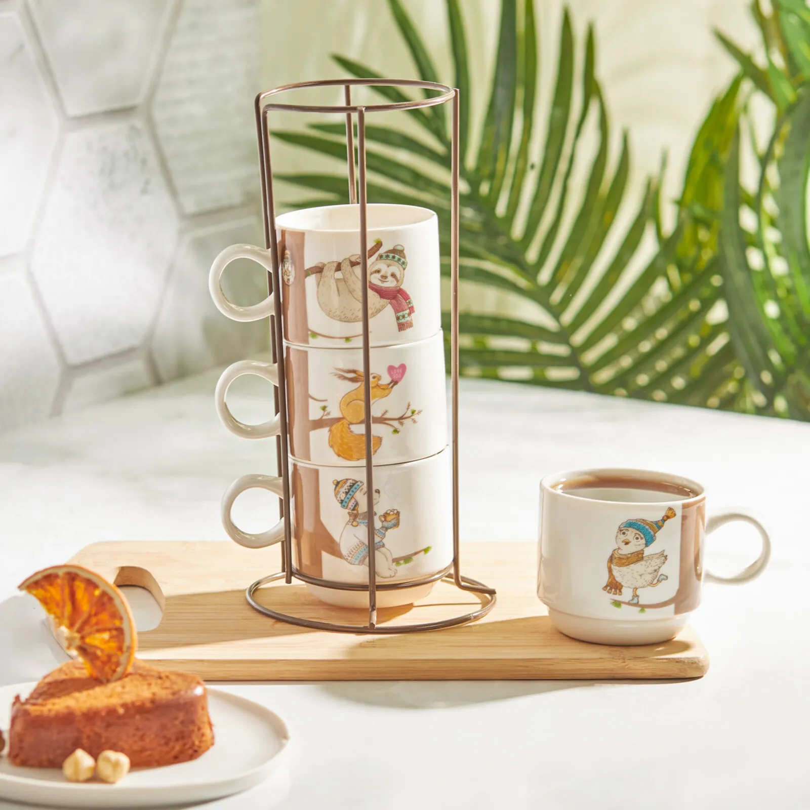 Karaca Branch 4-Piece Mug With Stand