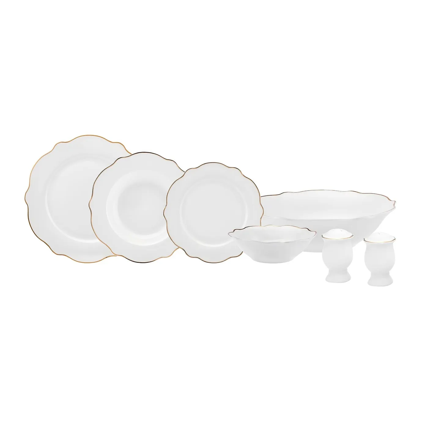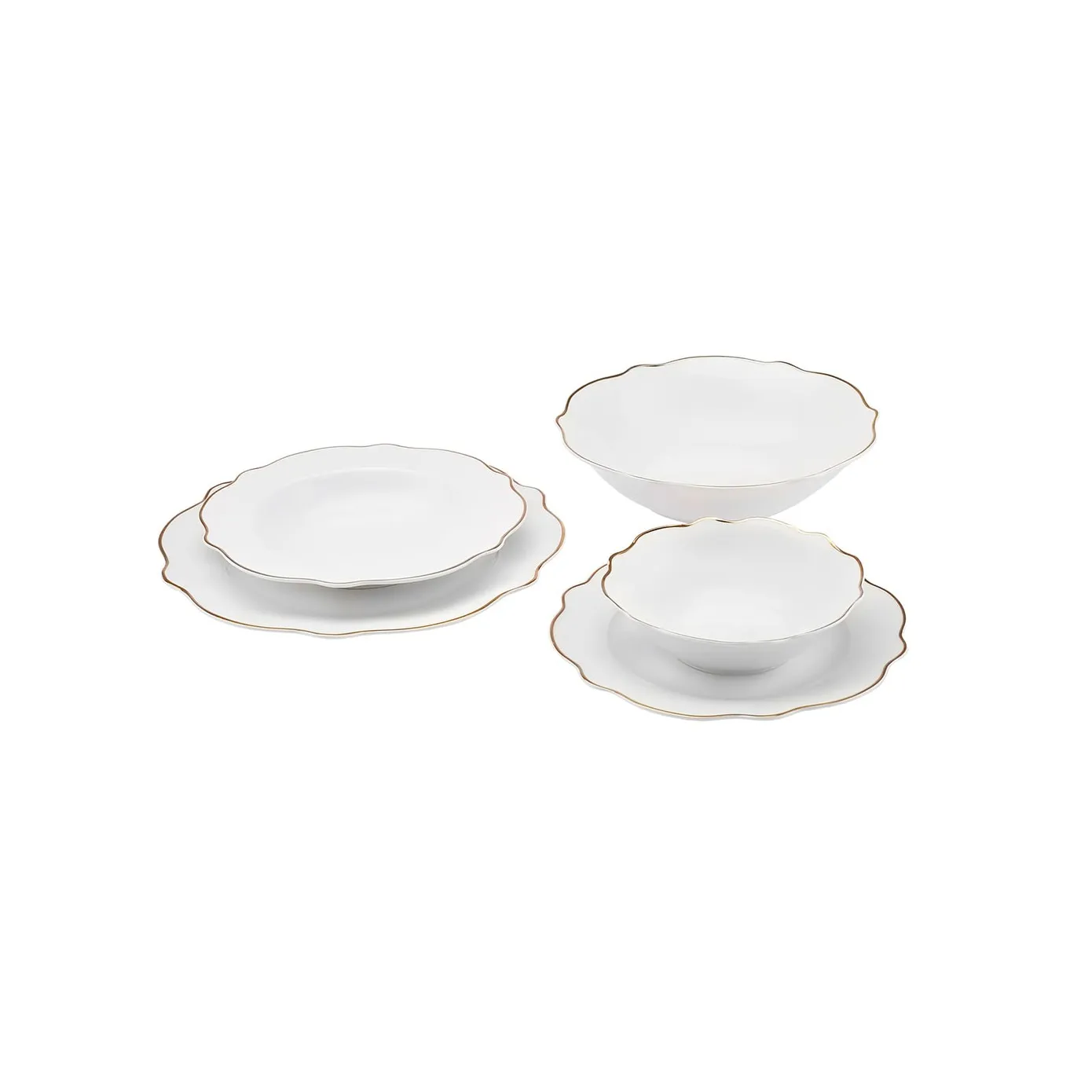 Karaca Daisy Gold Wave Shape tiefe Schüssel 27-teilig 6 Personen Porzellan Geschirr-Set