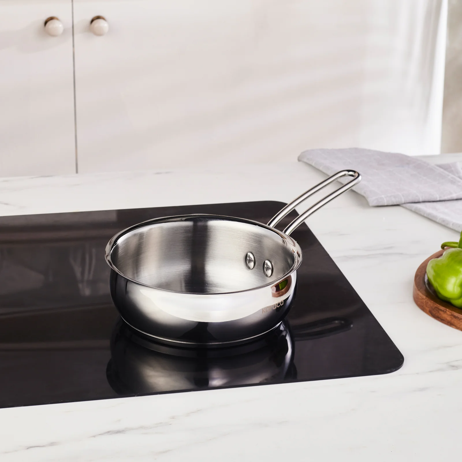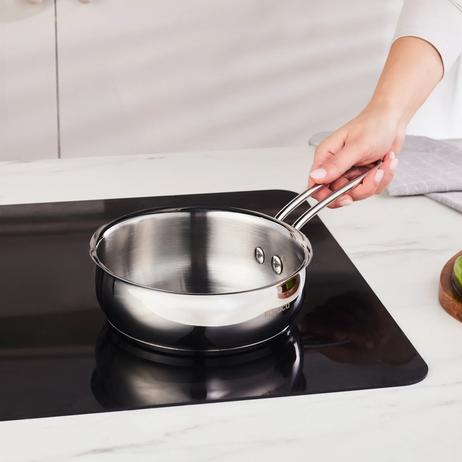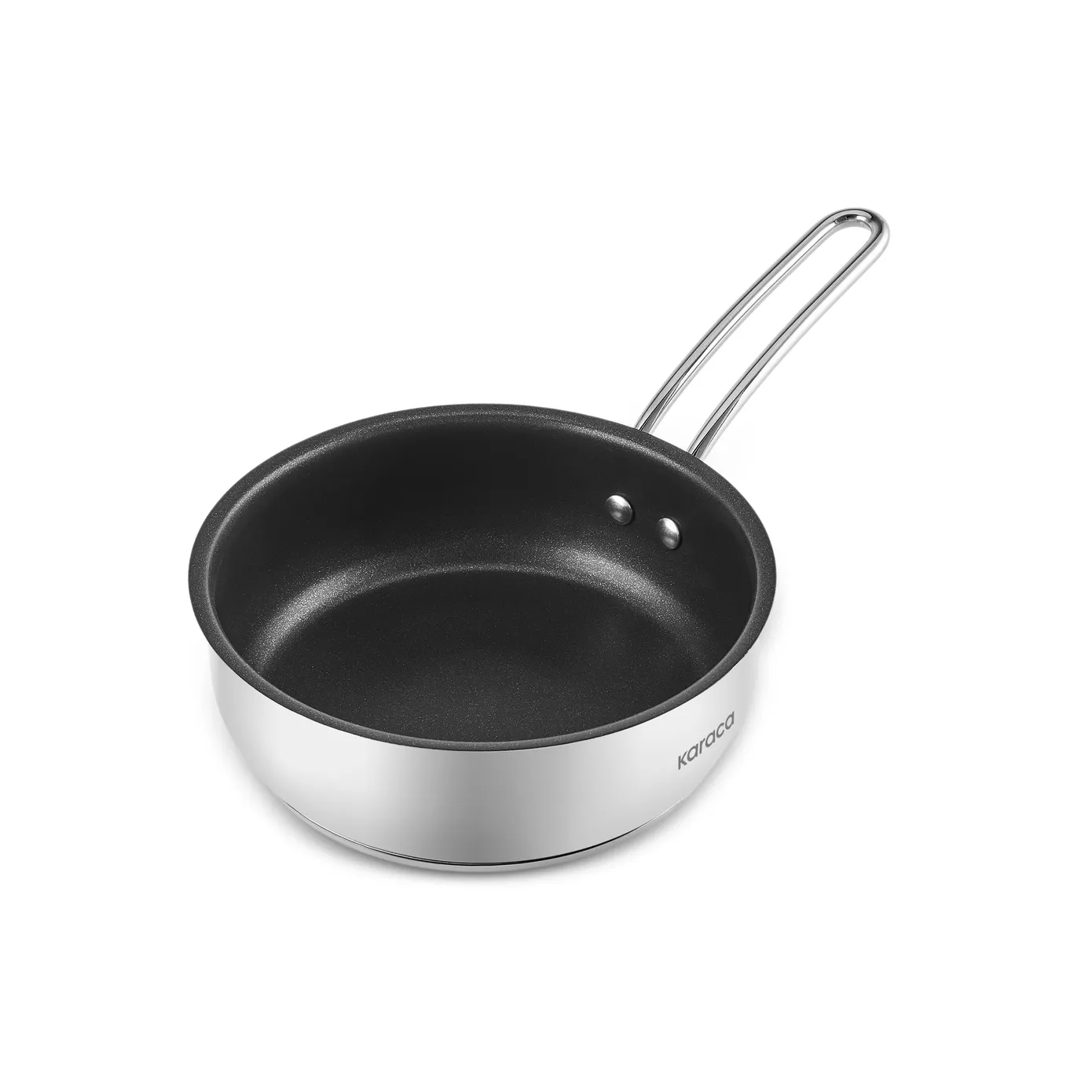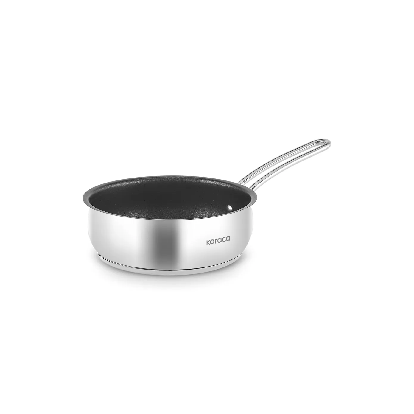 Er verhilft Ihnen zu einem perfekten Geschmack, indem er die Speisen gleichmäßig und gleichmäßig gart, indem er die Hitze gleichmäßig über die gesamte Fläche verteilt. Mit seinem speziellen Energiekapselboden, der die Wärme speichert, bietet er maximale Zeit- und Energieeinsparung. Dank seiner Struktur aus rostfreiem Stahl ist das Emirgan Steel Cookware Set langlebig und gesund. Die polierte Oberfläche bewahrt den Glanz. So wird es jahrelang in Ihrer Küche zu Gast sein und sein Aussehen vom ersten Tag an bewahren. Die Teflonbeschichtung im Inneren der Pfanne verhindert das Anhaften und Anbrennen der Speisen.