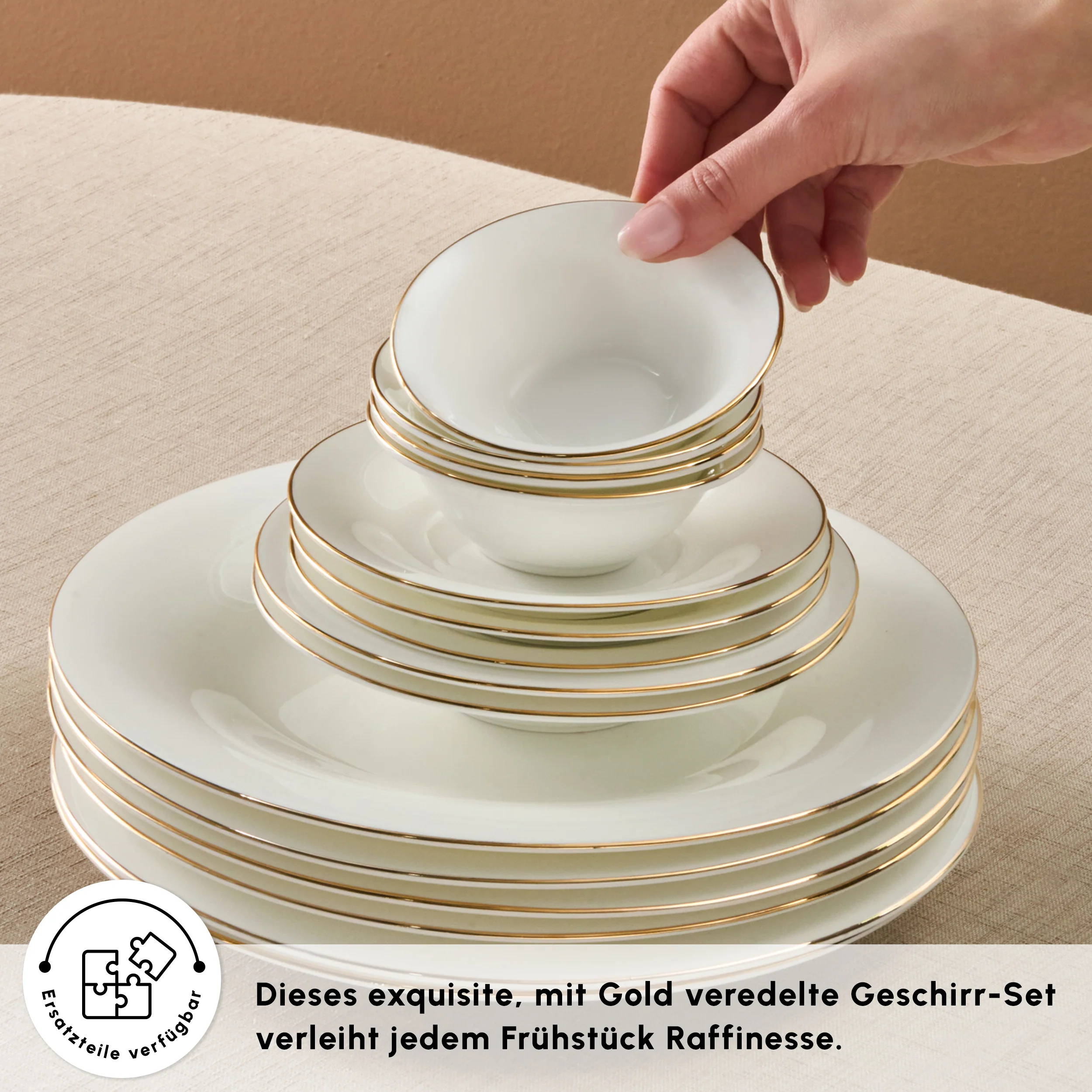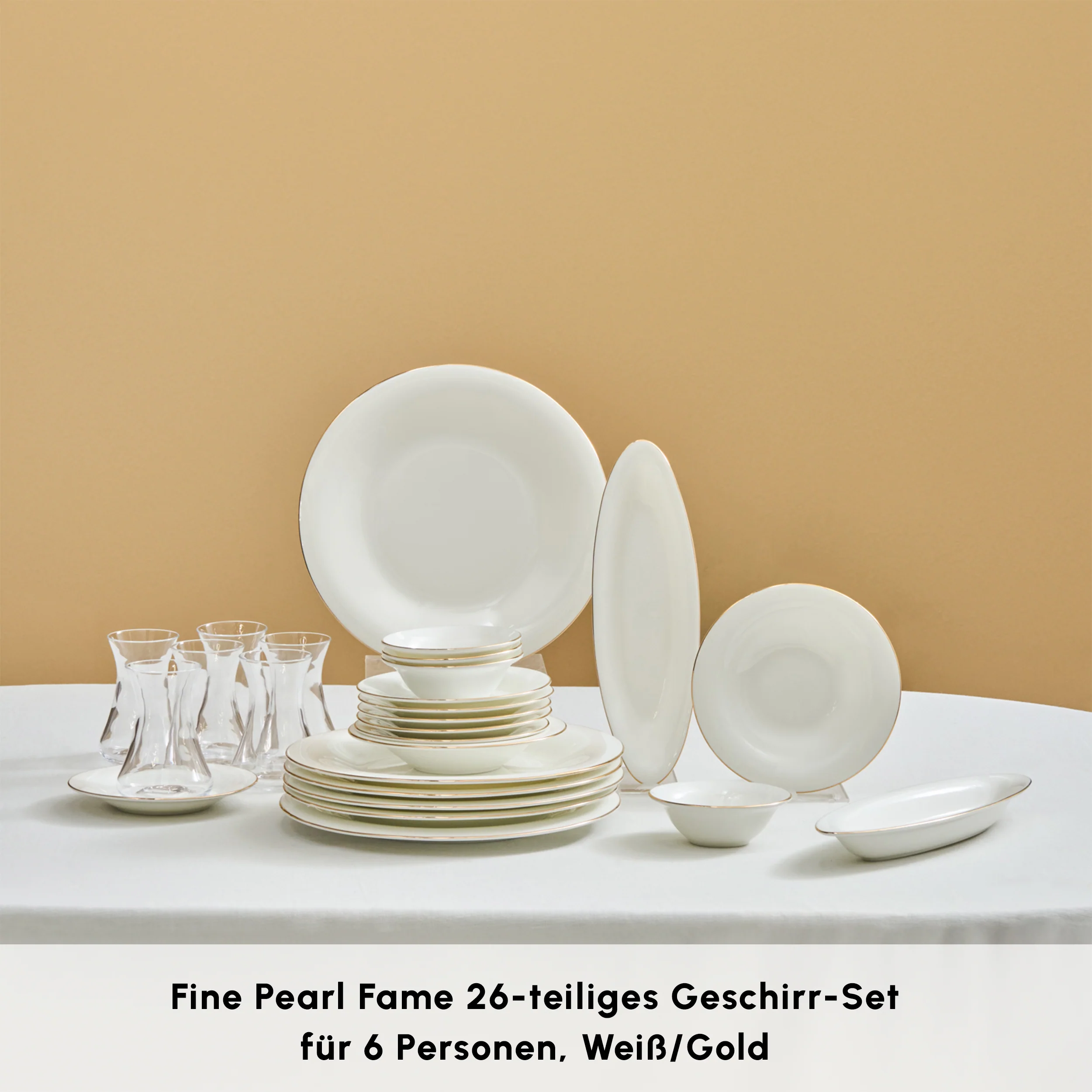 Karaca Fine Pearl New Fame Frühstücksset für 6 Personen, 26-teilig – Gold