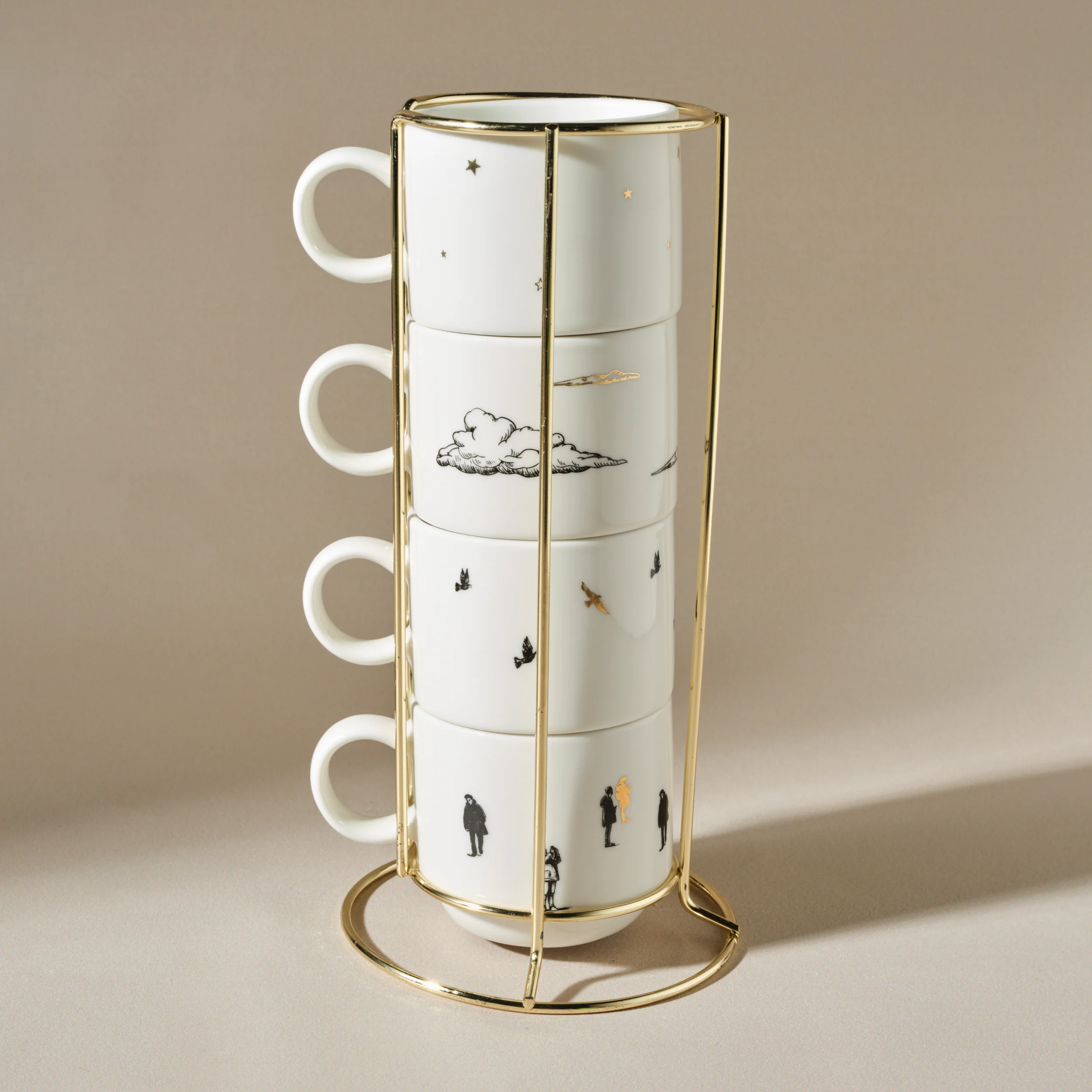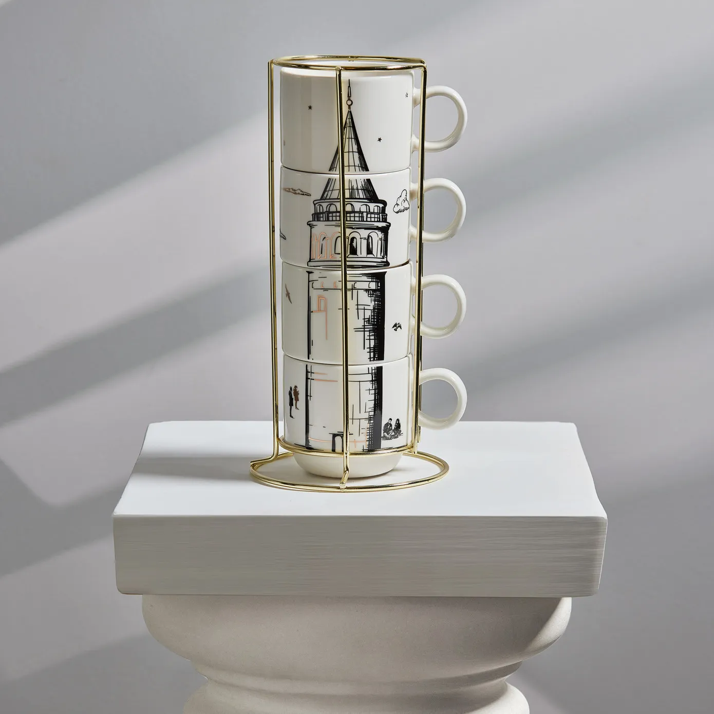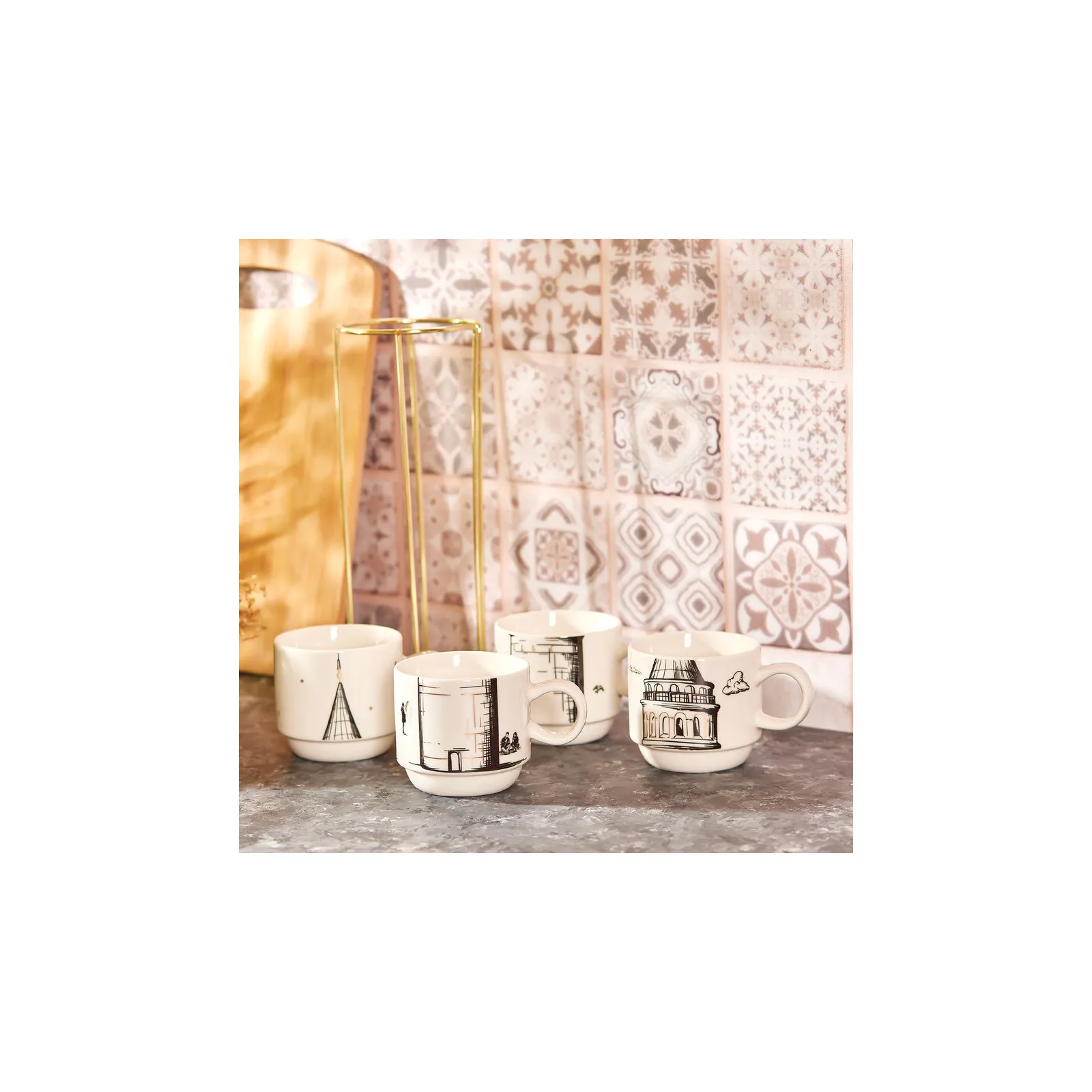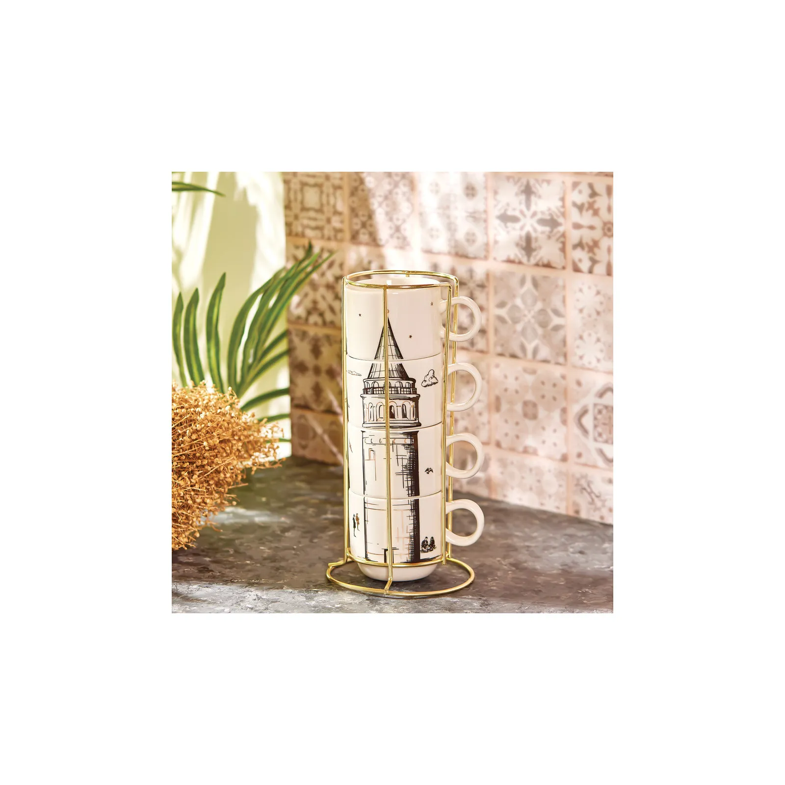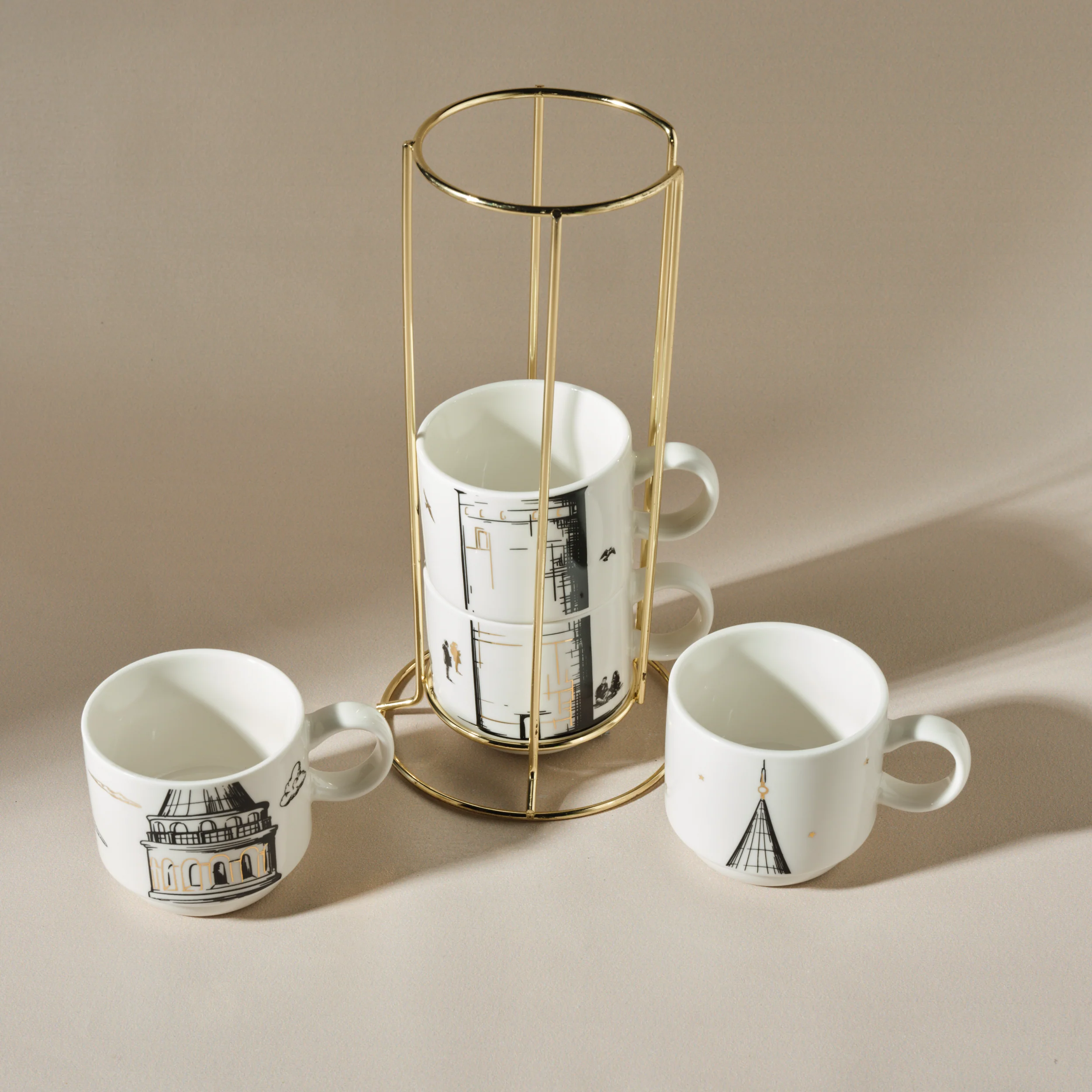 Karaca Galata 4 Teilige Mug Mit Ständer Porzellan 160 ml