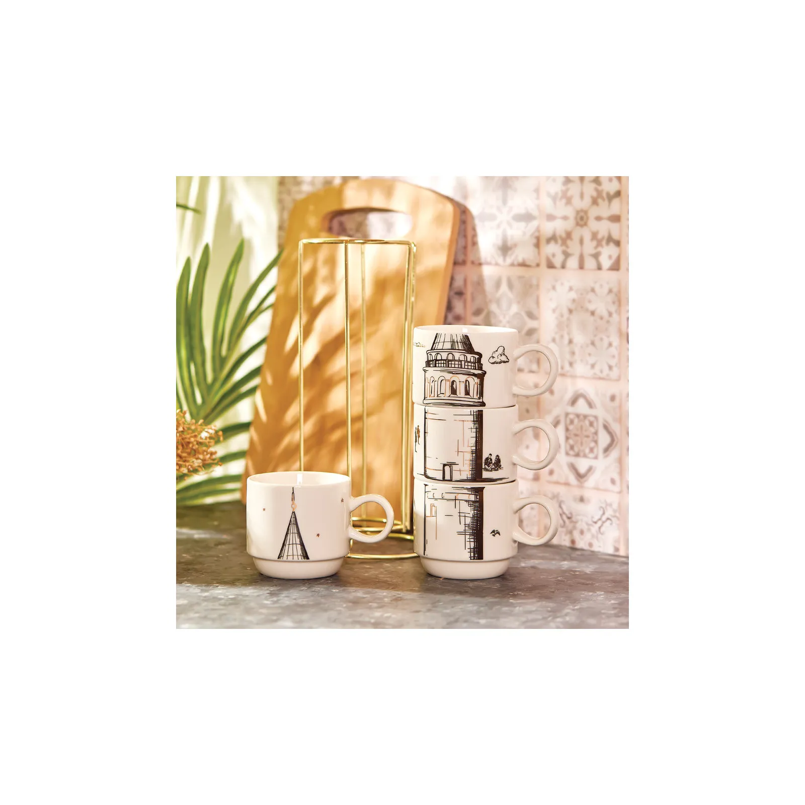 Schreibe die erste Bewertung für „Karaca Galata 4 Teilige Mug Mit Ständer Porzellan 160 ml“