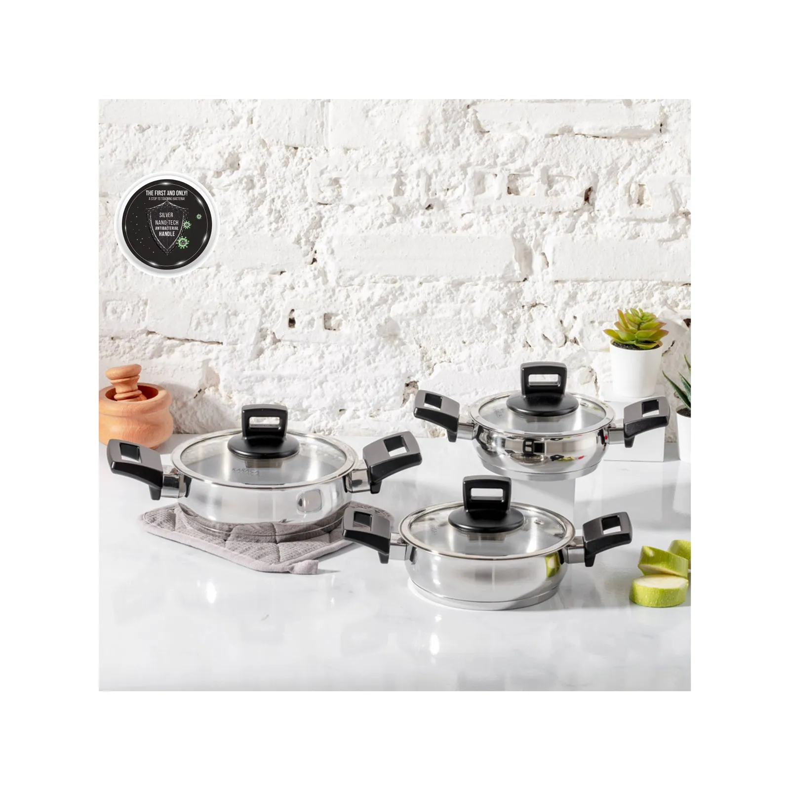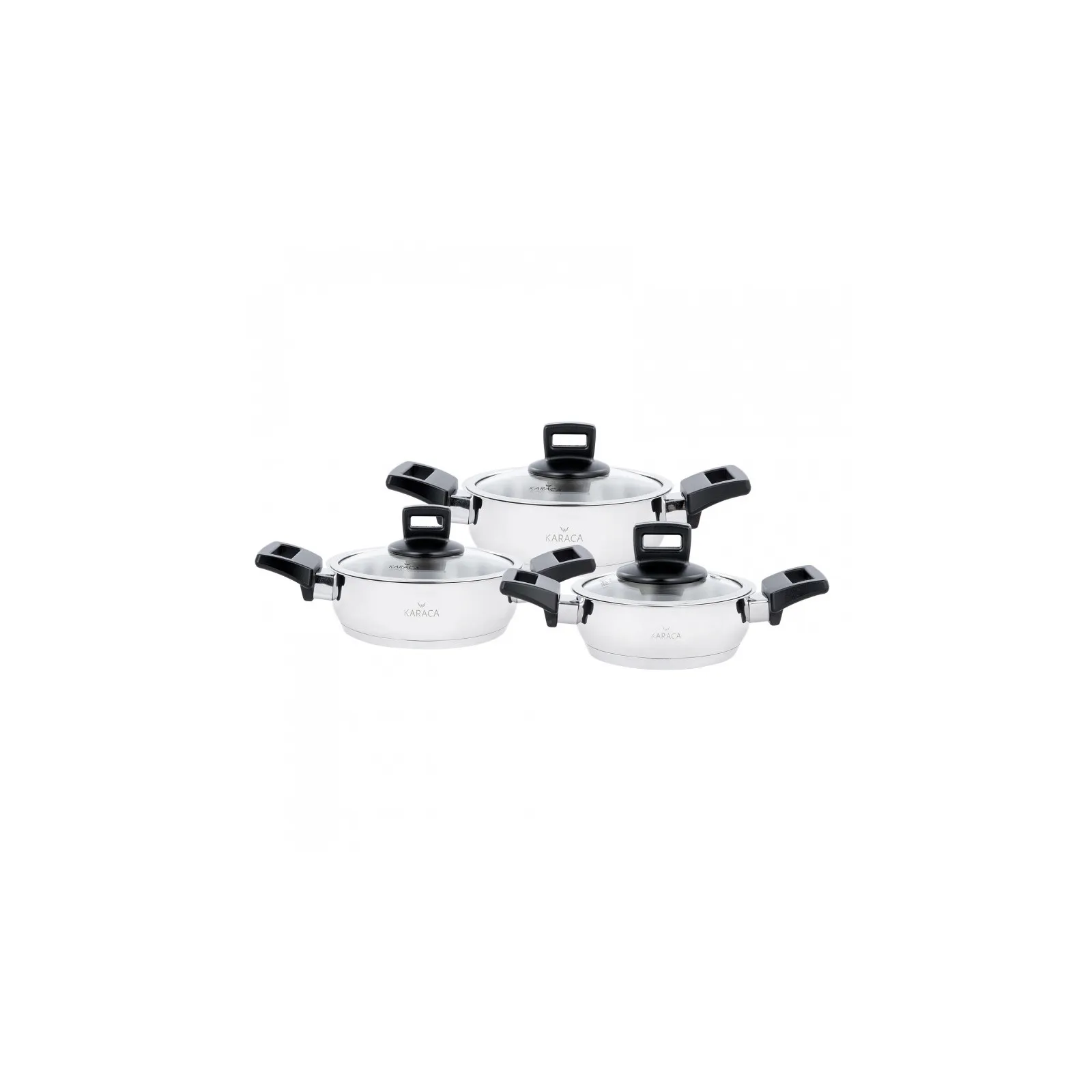 Karaca Galata 6 teiliges Stahlflachbratpfannenset mit antibakteriellen Griffen.