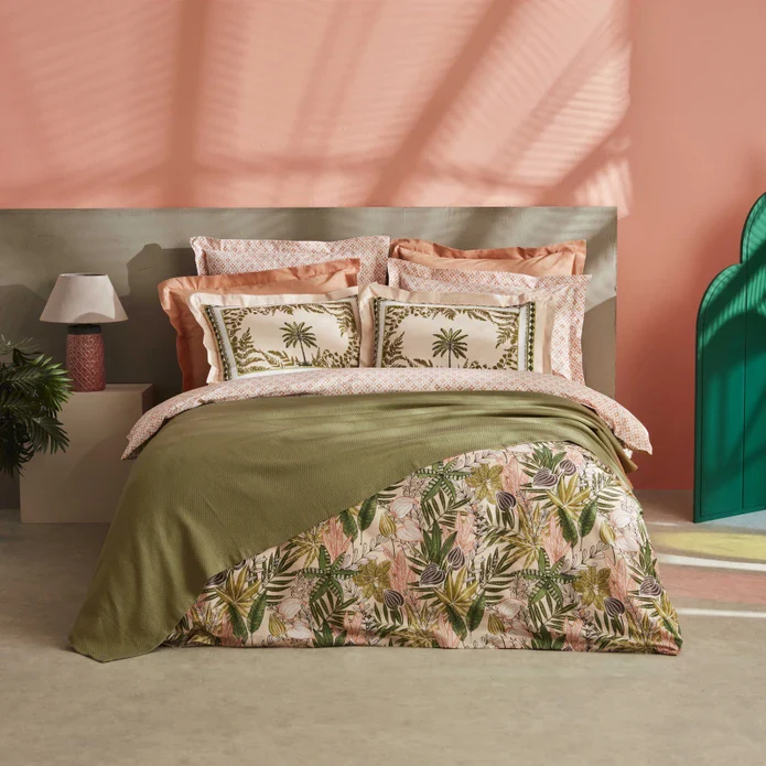 Karaca Home Afzelia Doppelbett Percale Bettwäsche mit Geschenk-Plaid Set in Pudra