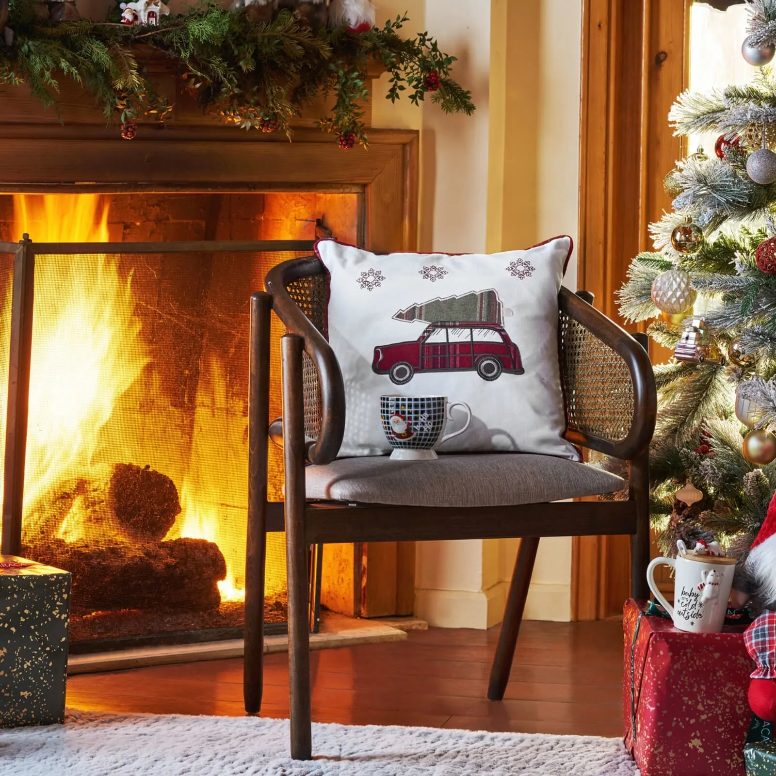 Karaca Home Woodland Cozy Kissenhülle mit Automotiv weiß 45×45 cm