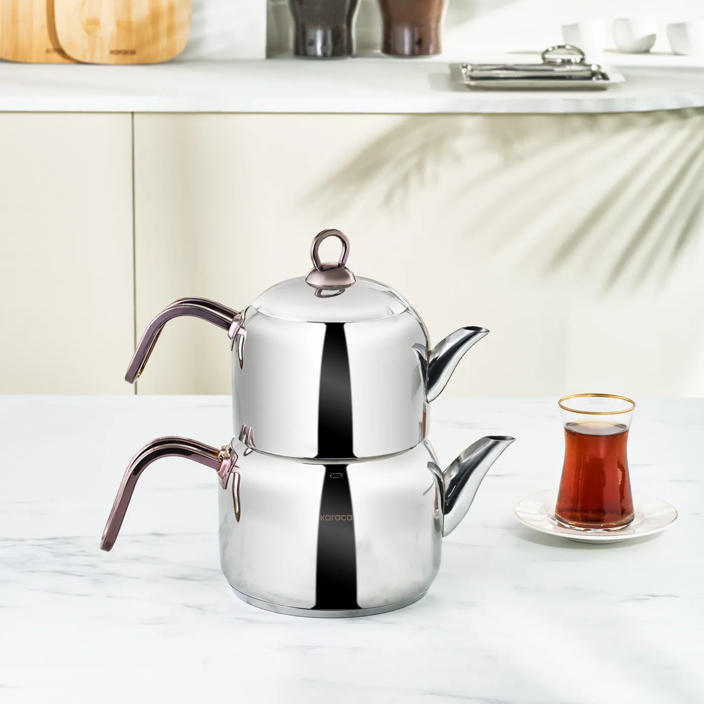 Karaca Manes Induktion Basis Medium Teekanne Set, Rose