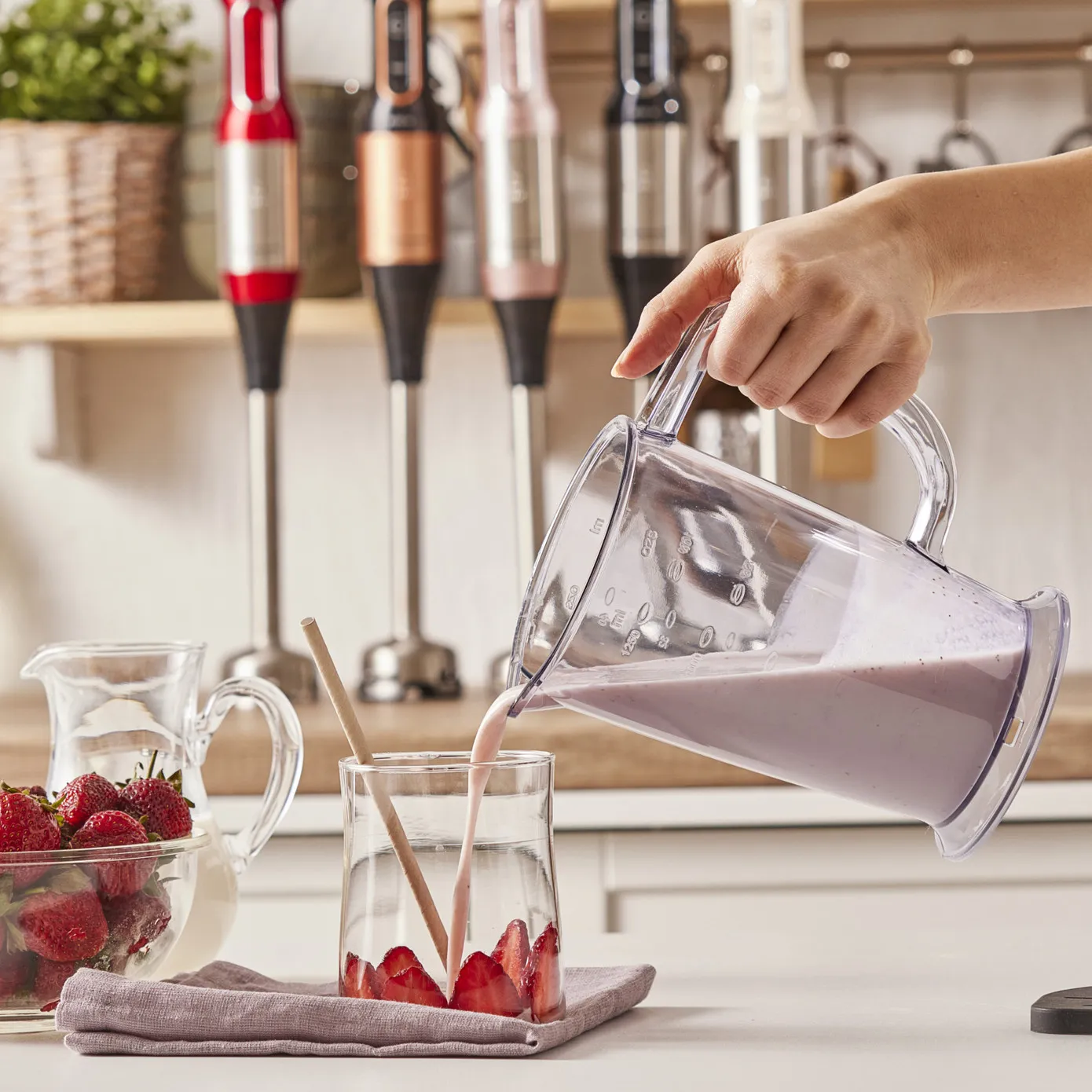 Mit der einstellbaren Geschwindigkeit und der Turbofunktion können Sie Mischungen, Pürees, Soßen und Suppen in idealer Konsistenz herstellen, indem Sie die Geschwindigkeit je nach Härtegrad der Zutaten auf die gewünschte Stufe einstellen.