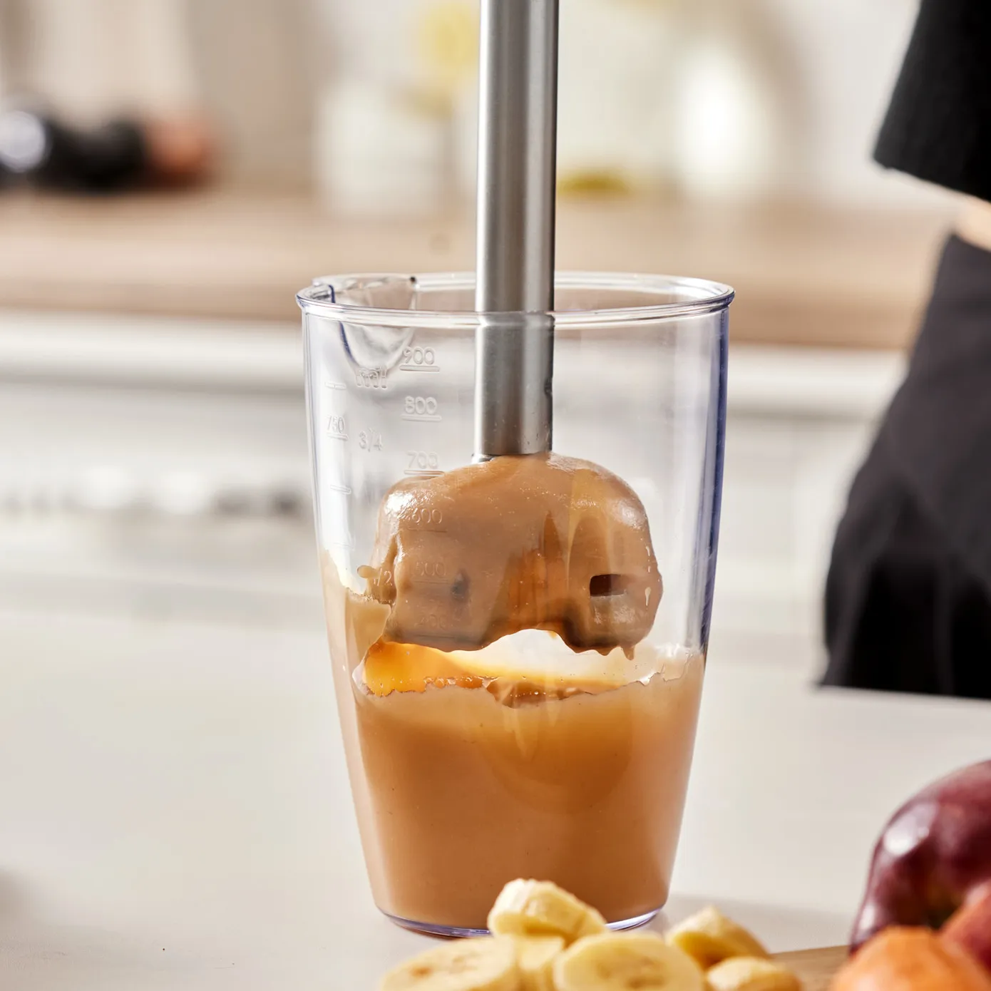 langer Pürierfuß ermöglicht es Ihnen, auch in sehr tiefen Töpfen mühelos zu pürieren und zu mixen.