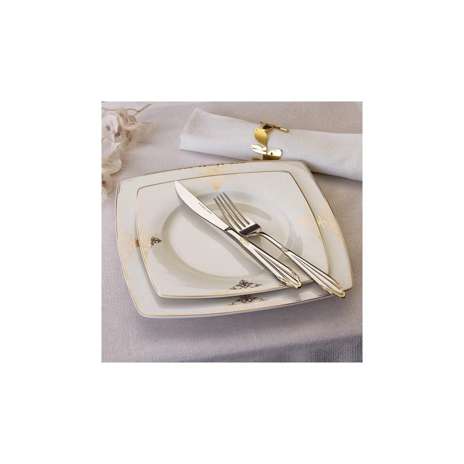 Karaca Melina Fine Cream Tafelservice- Set in für 12 Personen- 60-teilig quadratische Form