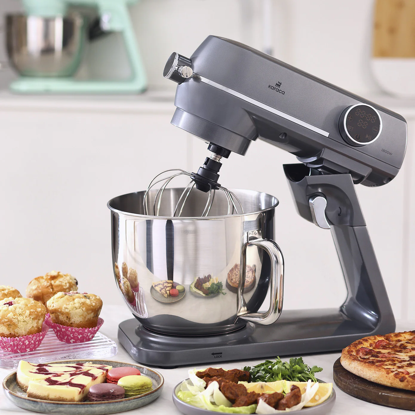 Mit dem Karaca Multichef Artisan Digital Display Standmixer mit 1800 W Leistung und 3 verschiedenen Aufsätzen können Sie sehr schnell und perfekt rühren, mixen und kneten.