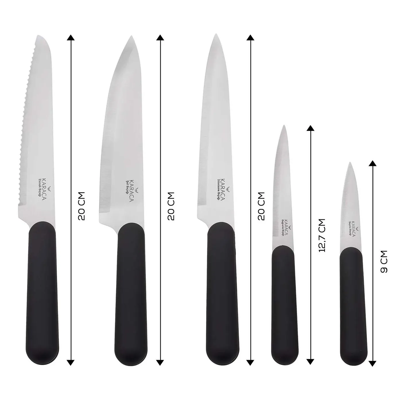 Stilvoll, ergonomisch und funktionell… Das Karaca Right Knife 6-teilige Messerset enthält 5 schöne und scharfe Messermodelle, darunter ein Schäl-, Schneide-, Hack-, Brot- und Kochmesser. Dieses Messerset, das sich durch seine Leichtigkeit und Zweckmäßigkeit auszeichnet, wird mit seinem ergonomischen Griff und seiner komfortablen Handhabung eines der beliebtesten Produkte in Ihrer Küche sein. Ihre Messer werden mit einem speziellen Ständer geliefert, um die Lebensdauer Ihrer Messer zu verlängern und eine einfache Aufbewahrung zu gewährleisten. Abwaschen mit den Händen wird empfohlen.