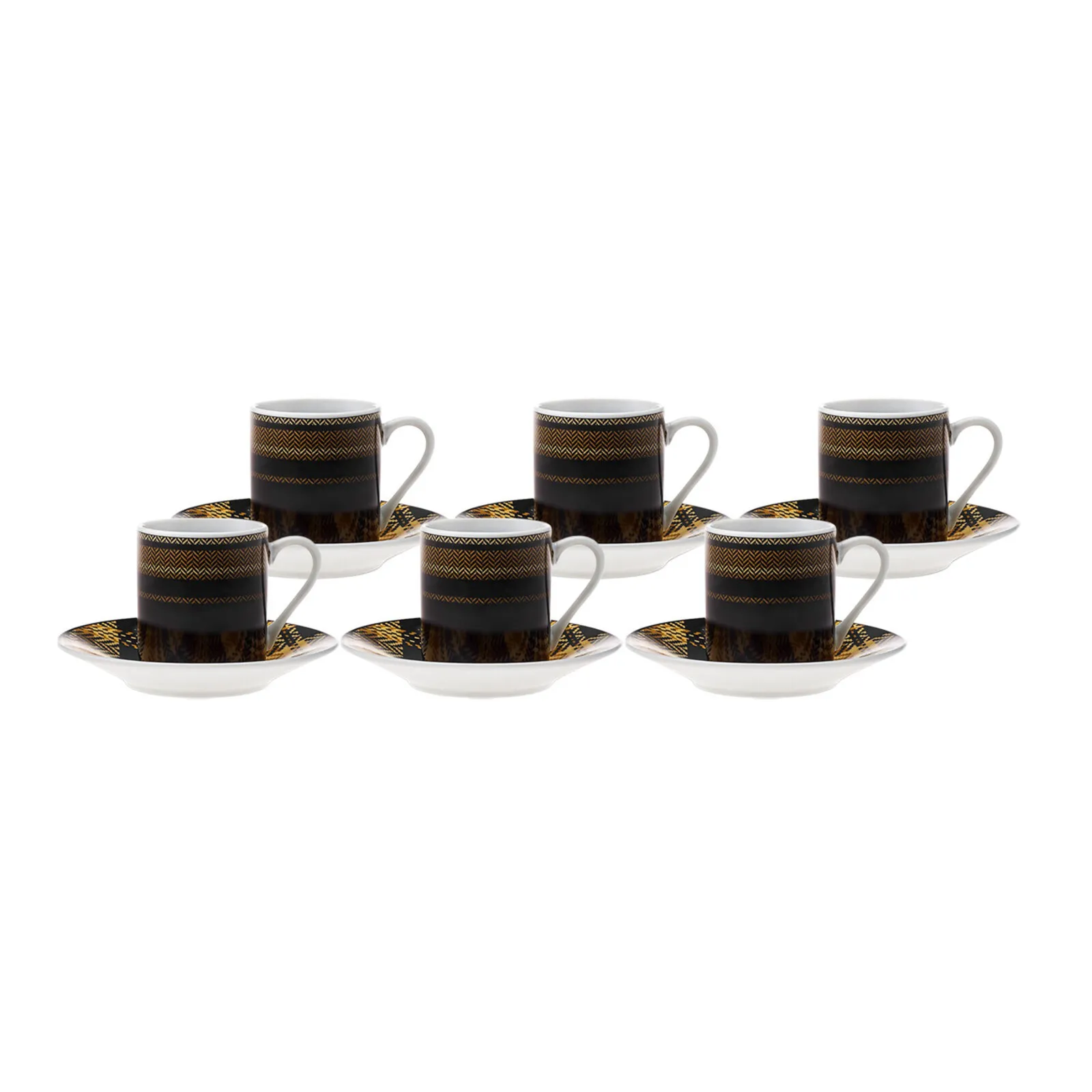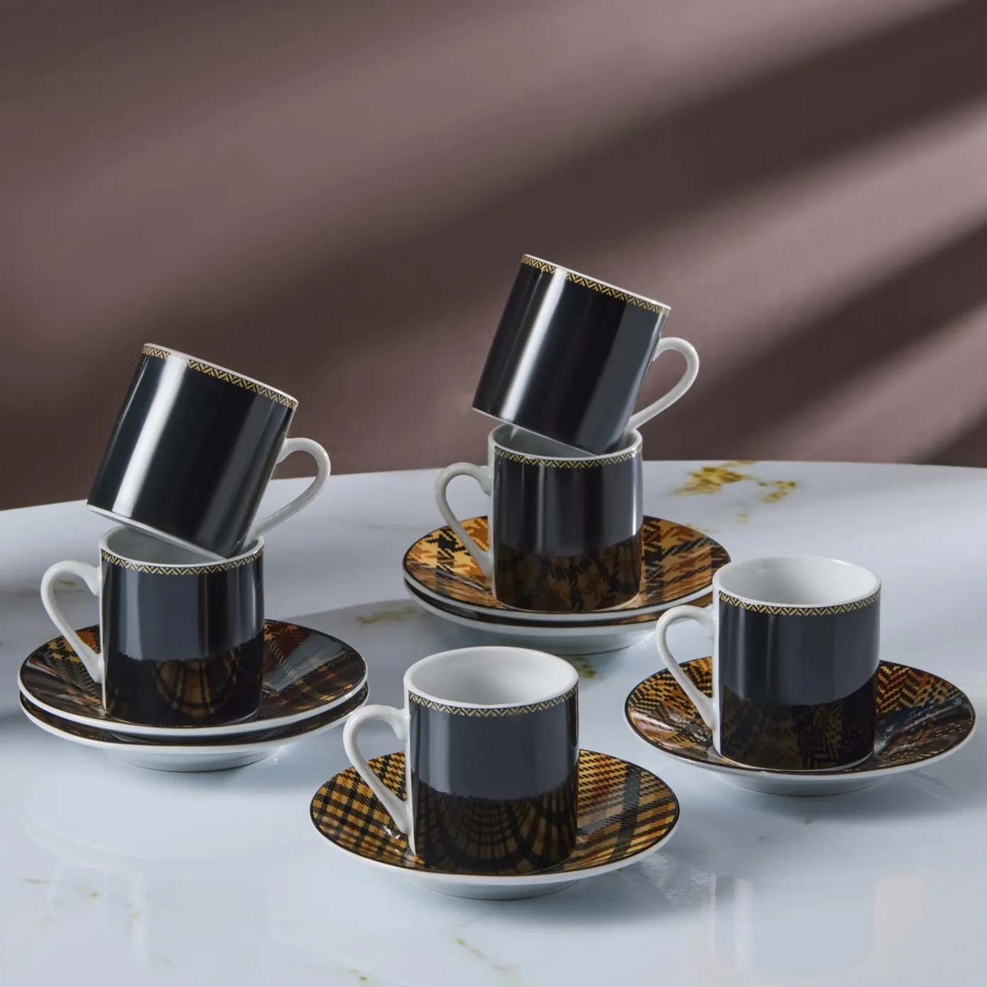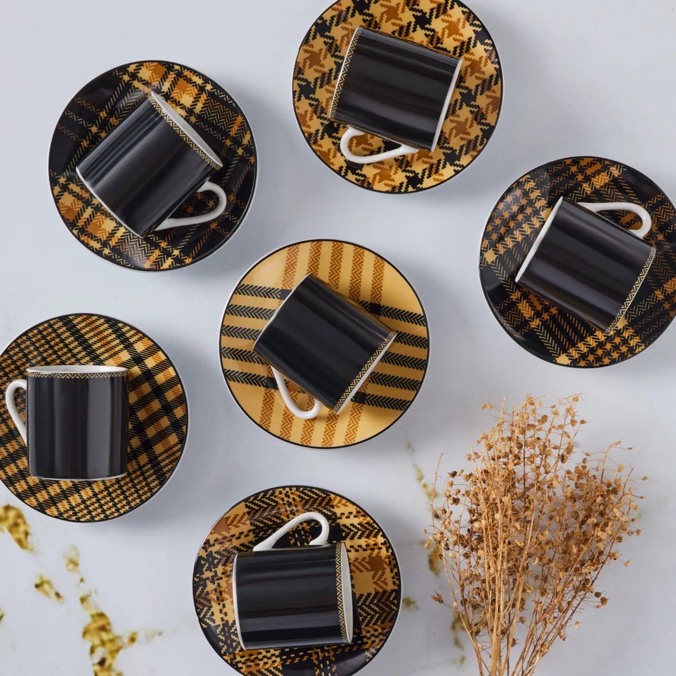Karaca Schwarz Kariertes Kaffeetassen-Set für 6 Personen 80 ml