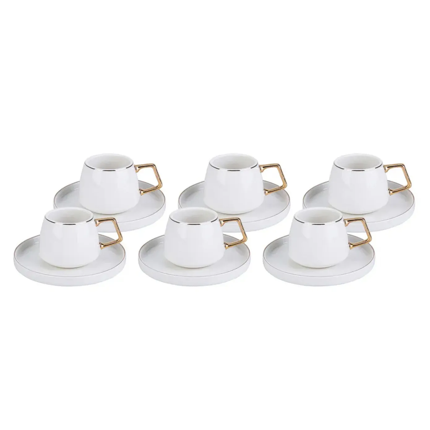 Das Karaca Streamline Saturn Kaffeetassen-Set für 6 Personen aus Porzellan mit seiner gewölbten Form, die das Kaffeetrinken viel angenehmer macht, bezieht die Kaffeekultur, die von der Vergangenheit in die Gegenwart getragen wird, behutsam in Ihre Unterhaltungen ein. Dieses Kaffeeset aus Porzellan, das mit seinen goldenen Details sehr elegant aussieht, ist mit seinen quadratischen Griffen äußerst elegant und ergonomisch. Verpassen Sie nicht das Saturn Kaffeetassen-Set aus Porzellan, das mit seiner hohen Qualität, seiner schlichten Eleganz, seinem zeitlosen Design und seiner stilvollen Verpackung unverzichtbar für Liebhaber von Deep L sein wird!