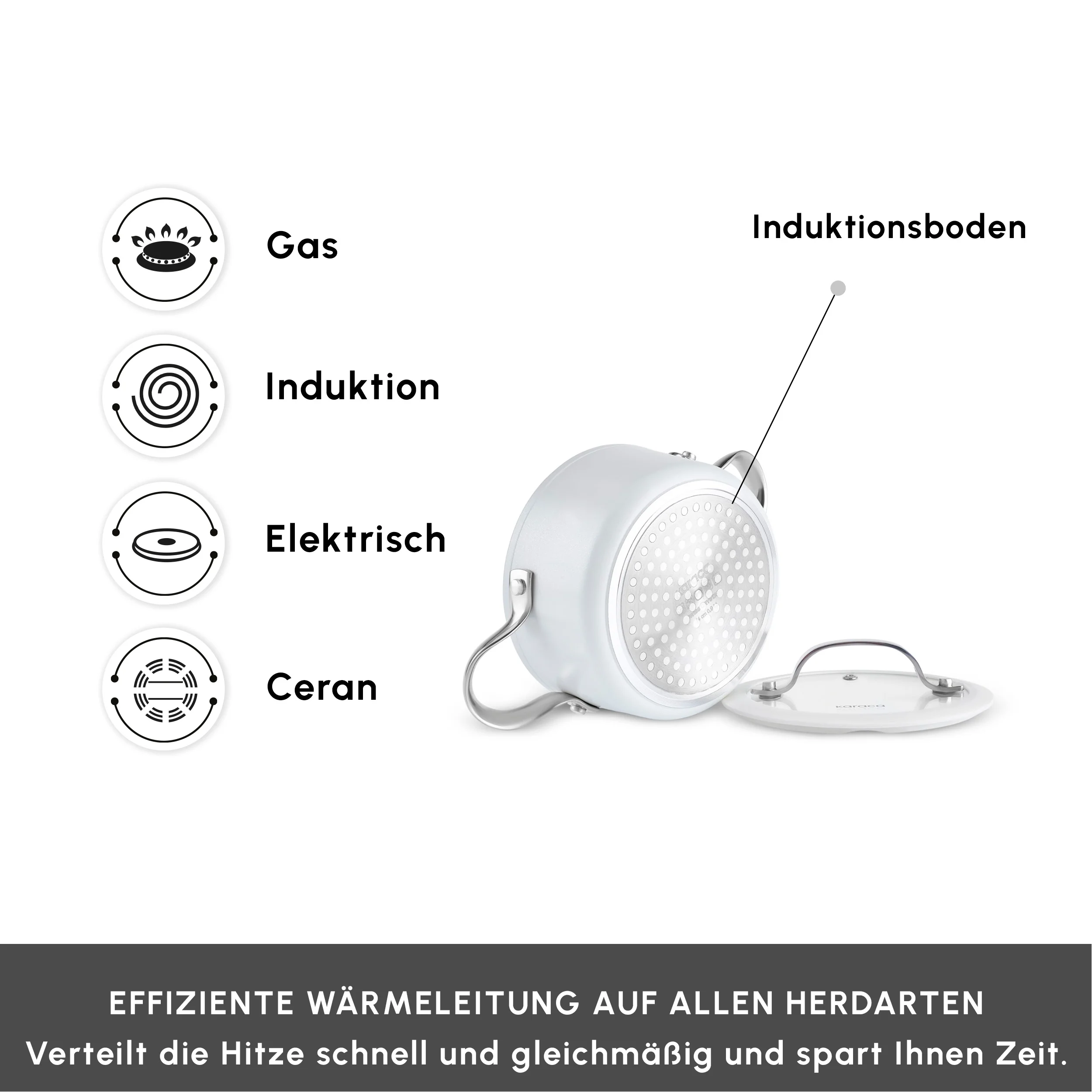 Ein brandneues Pfannenset mit hervorragenden Antihafteigenschaften: SwissCrystal Das Karaca SwissCrystal Pfannenset, das seine Stärke aus der antihaftbeschichteten SwissCrystal Oberfläche bezieht, bietet Ihnen die Möglichkeit, eine Reihe von Gerichten auf praktische Weise zuzubereiten, wie z.B. Eier, Fisch, Hähnchen, und das ganz ohne Öl. Die antihaftbeschichtete Oberfläche wird mit Schweizer Kristallen hergestellt und enthält keine gesundheitsgefährdenden chemischen Verbindungen wie „PFAS“, die die Gesundheit beeinträchtigen. Zudem ist das SwissCrystal Pfannenset leicht zu reinigen! Egal, welches Gericht Sie zubereitet haben, es genügt, es kurz unter Wasser zu halten. Die essentiellen und praktischen Eigenschaften des SwissCrystal Pfannensets erleichtern Ihnen die Zubereitung schmackhafter Gerichte und sorgen für eine einfache Handhabung in Ihrer Küche.