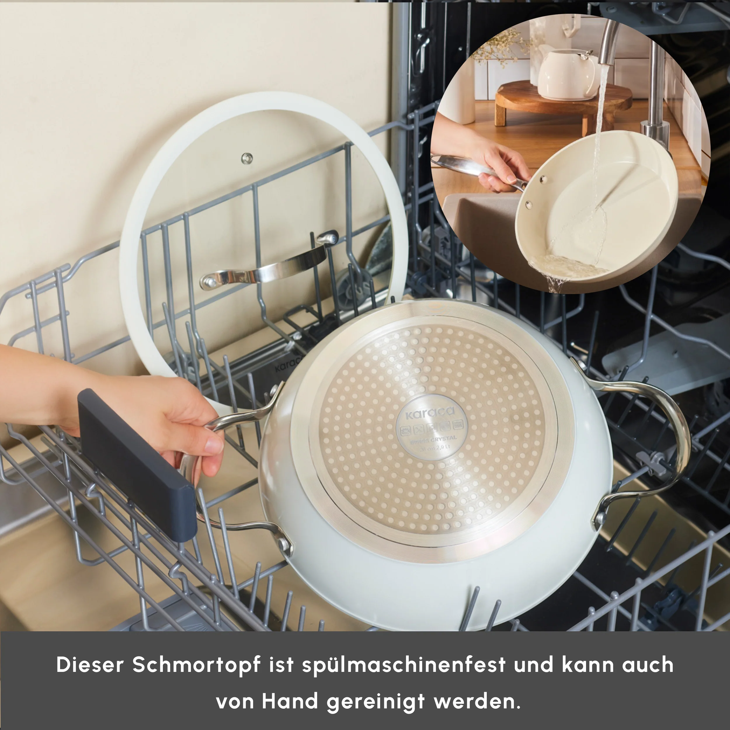 Karaca Swiss Crystal Almond Cream Wokpfanne mit Griff 28 cm