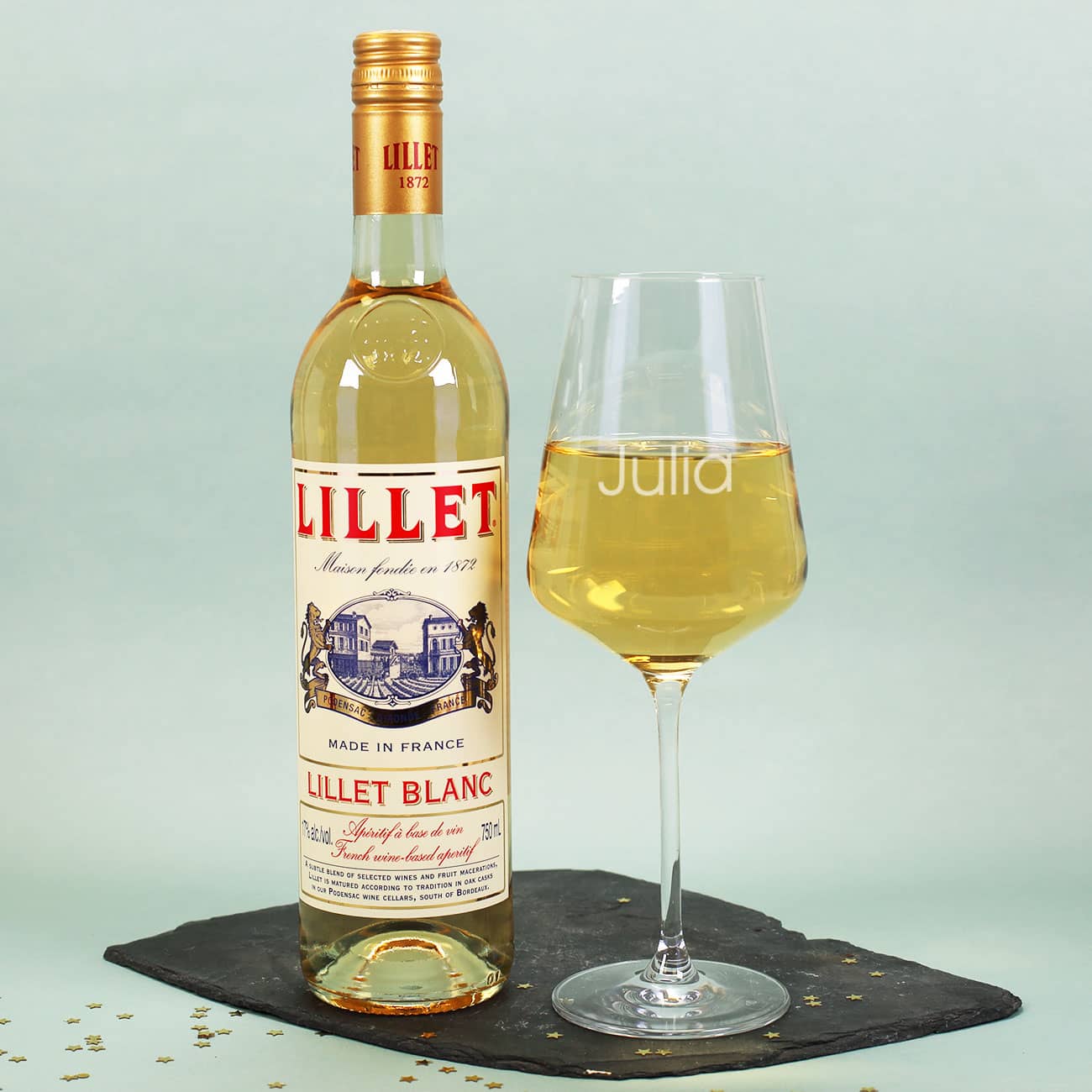 Das Lillet Geschenkset mit Namensgravur ist ein exklusives und stilvolles Präsent für besondere Anlässe wie Geburtstage, Muttertag oder als Glückwunsch zu einem besonderen Meilenstein. Dieses Set bietet die Wahl zwischen den beiden beliebten Lillet-Sorten Rosé und Blanc, die mit ihrem erfrischenden Geschmack ideal für einen gemütlichen Abend oder als Begleitung für festliche Anlässe geeignet sind. Um das Geschenkset noch persönlicher zu gestalten, wird ein hochwertiges Leonardo Weinglas mit dem Namen des Beschenkten graviert. Das Set wird in einer eleganten Geschenkverpackung, die wahlweise in Weiß oder Gold erhältlich ist, geliefert und mit einem individuellen Wunschtext veredelt.