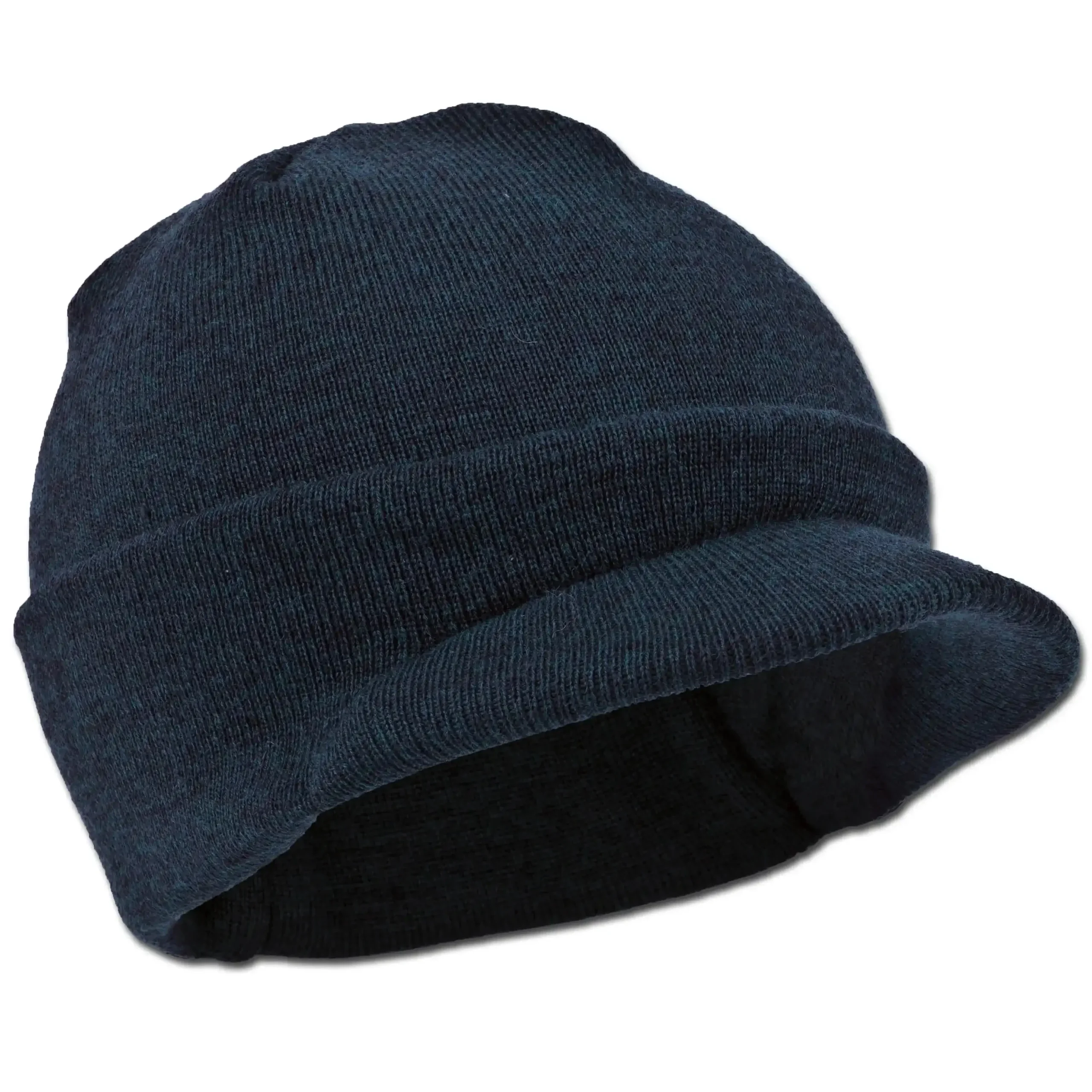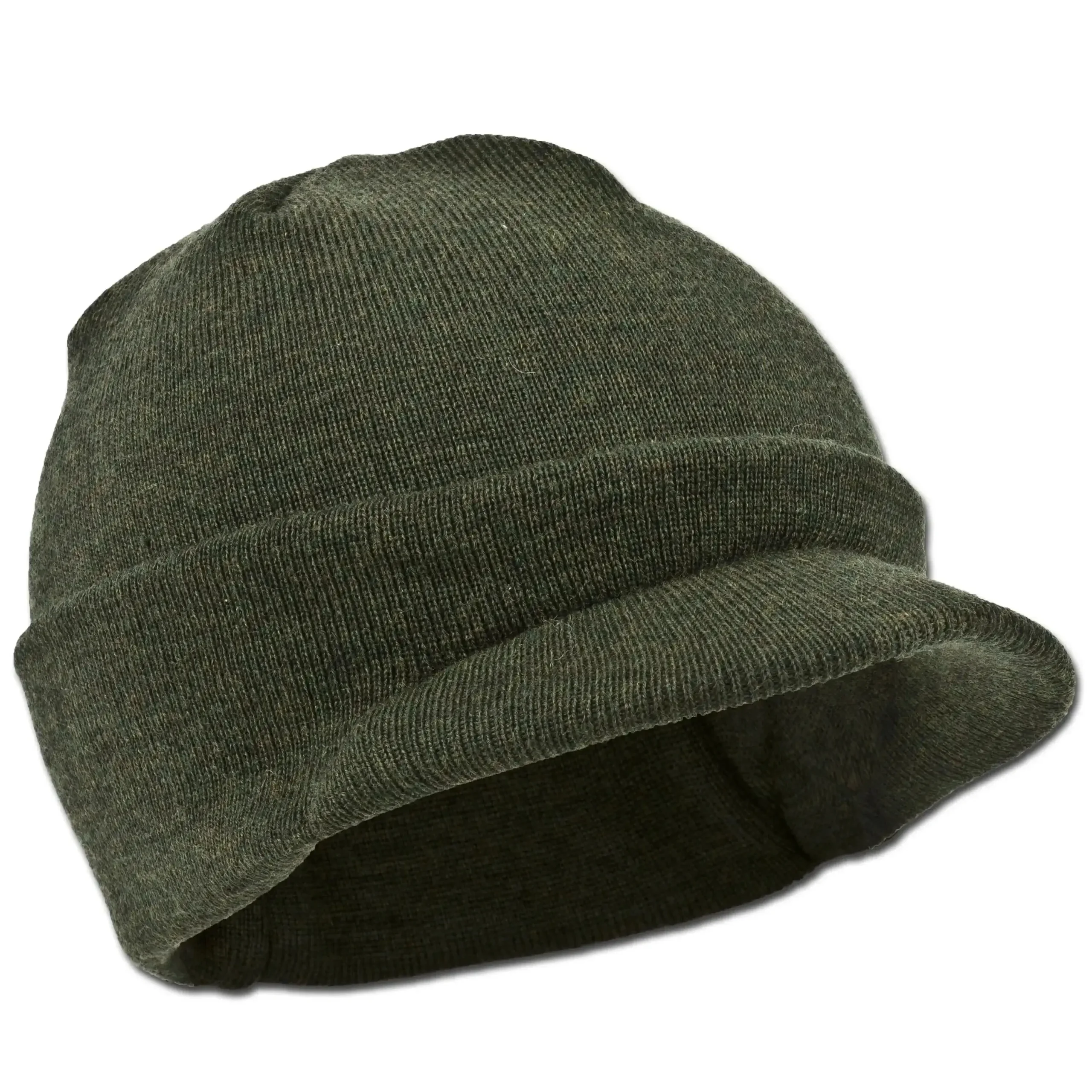Passgenaue Merinomütze mit Strickschirm aus Wolle vom Merinoschaf in Feinstrick-Optik.