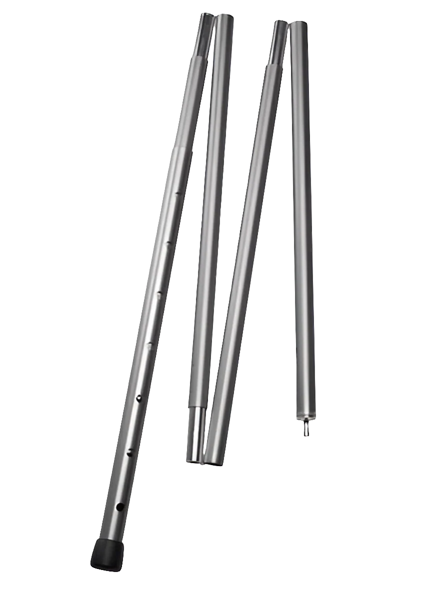 Das in der Länge verstellbare Gestänge ist aus hochwertigem Aluminium hergestellt und vereint leichtes Gewicht und große Stabilität. Zusätzlicher Vorteil dieser Stange ist das verstellbare Segment im unteren Bereich. Damit lässt sich die Stangenlänge zwischen 160 und 190 cm passend zu der gewünschten Aufbauvariante einstellen. Am unteren Ende der Stange sorgt eine verstärkte Gummikappe für festen Stand auf allen Böden. Eine stabile, kurze Spitze am oberen Ende der Stange lässt sich in Schlaufen/Gurtbänder/Taschen und Ösen schieben. Die Stange ist dadurch für unterschiedliche Montagemöglichkeiten geeignet.