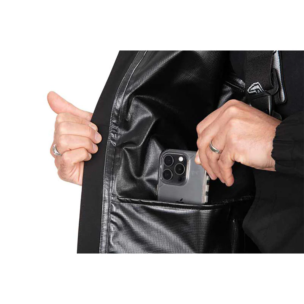 Die Fox Rage Ragewear Rainsuit Jacket hat ebenfalls einen mittig verlaufenden versiegelten Reißverschluss, wie auch die Jackentaschen auf beiden Seiten. Wem das als sicheren Stauraum nicht genügt, der wird sich über die innen liegende Tasche auf der rechten Seite freuen. Der hohe Kragen schützt zuverlässig vor Wind, wie auch die elastischen Bündchen an den Ärmeln. Ein elastischer Kordelzug am Jackensaum bietet mit seiner Verstellbarkeit die Option, den perfekten Fit für sich zu finden. Jacke und Latzhose zusammen ergeben beim Fox Rage Ragewear Rainsuit eine tolle regensichere Kombination, die zusätzlich zu Tragekomfort und Praktikabilität auch noch mit einem tollen Preis-Leistungs-Verhältnis zu glänzen weiß.