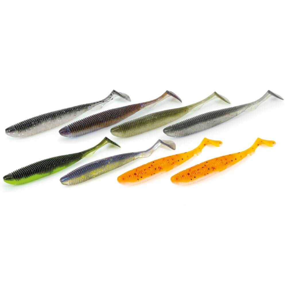 Der „Real Action Shad“ von Molix ist ein klassischer und genialer Softbait. Denn die hervorragende Gummimischung bietet dabei eine absolute Elastizität bei einer hohen Dichte. Eine feste Konsistenz und faltbar in einem machen diesen Köder zum Allrounder auf sämtliche Raubfischarten. Der Gummifisch ist in zwei Sparten unterteilt und dient somit vom Kopf bis in den Mittelbereich für ordentlich viel Vibrationen und Verwirbelungen unter Wasser und vom schlanken Mittelteil bis hin zum Trapez-förmigen Paddel, sorgt dieser für seinen stabilen und natürlichen Lauf. Der Körper ist geschlitzt und lässt sich prima mit einem Dropshot– oder Offset-Haken durch Krautfelder leiern oder wird mit dem klassischen Jighead in hindernisarmen Gewässerbereichen zum Faulenzen geladen.