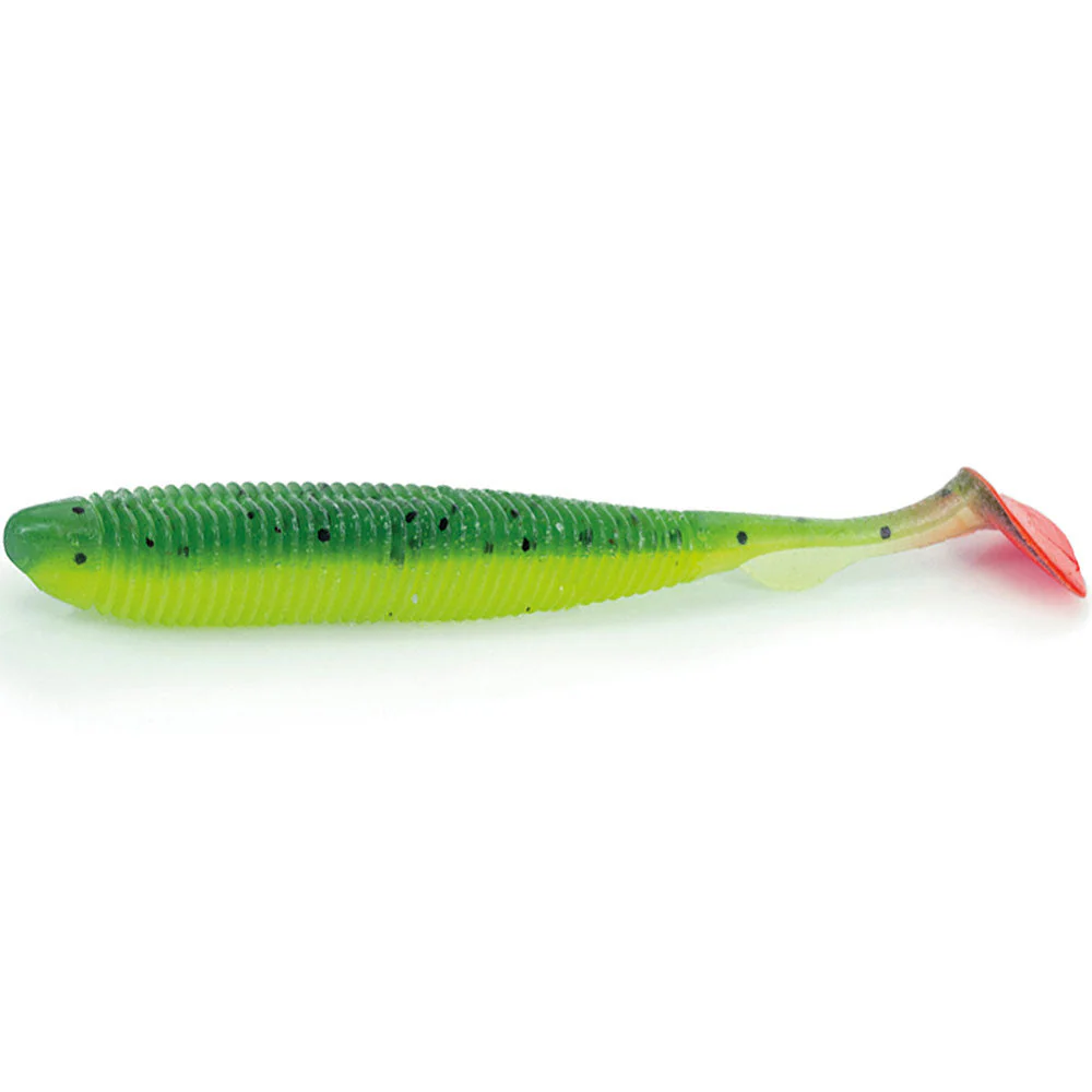 Der „Real Action Shad“ von Molix ist ein klassischer Softbait mit genialen Eigenschaften. Denn die herausragende Gummimischung bietet eine absolute Flexibilität bei einer dennoch hohen Dichte. Eine beständige Festigkeit mit ausreichend Mobilität in einem, machen diesen Köder zum Wunderwuzzi auf sämtliche Raubfische. Der Gummifisch ist in zwei Unterteilungen eingestuft und sorgt somit vom Kopf bis in den Mittelbereich für ordentlich viel Vibrationen und Druck unter Wasser und vom dünnen Mittelteil bis hin zum Trapez-förmigen Paddel, sorgt dieser für seinen stabilen und natürlichen Lauf. Der Körper ist geschlitzt und lässt sich ideal mit einem Offset-Haken durch Krautfelder dirigieren oder man nutzt den klassischen Jighead zum Faulenzen oder jiggen.