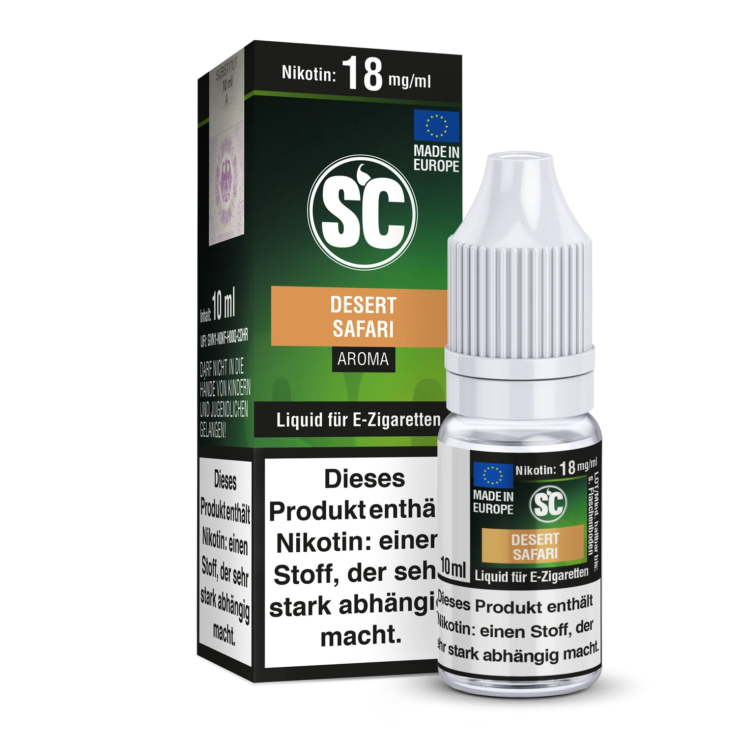Mit jeder SC Liquid Flasche, erhalten Sie 10 ml Liquid von dem gewählten Liquid Aroma und der gewählten Stärke. Ihnen stehen insgesamt 5 Stärken mit und ohne Nikotin zu Auswahl. Das SC Desert Safari Tabak E-Zigaretten Liquid schmeckt beim Dampfen nach Tabak.
