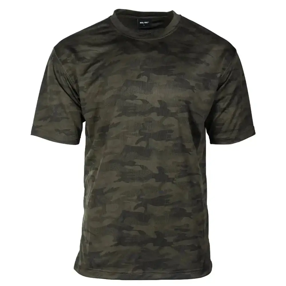 Das Mil-Tec T-Shirt Mesh dark camo ist dank verwendetem Meshmaterial atmungsaktiv und schnelltrocknend. Die sportliche Passform mit Rundhalsausschnitt sorgt für ein angenehmes Tragegefühl.