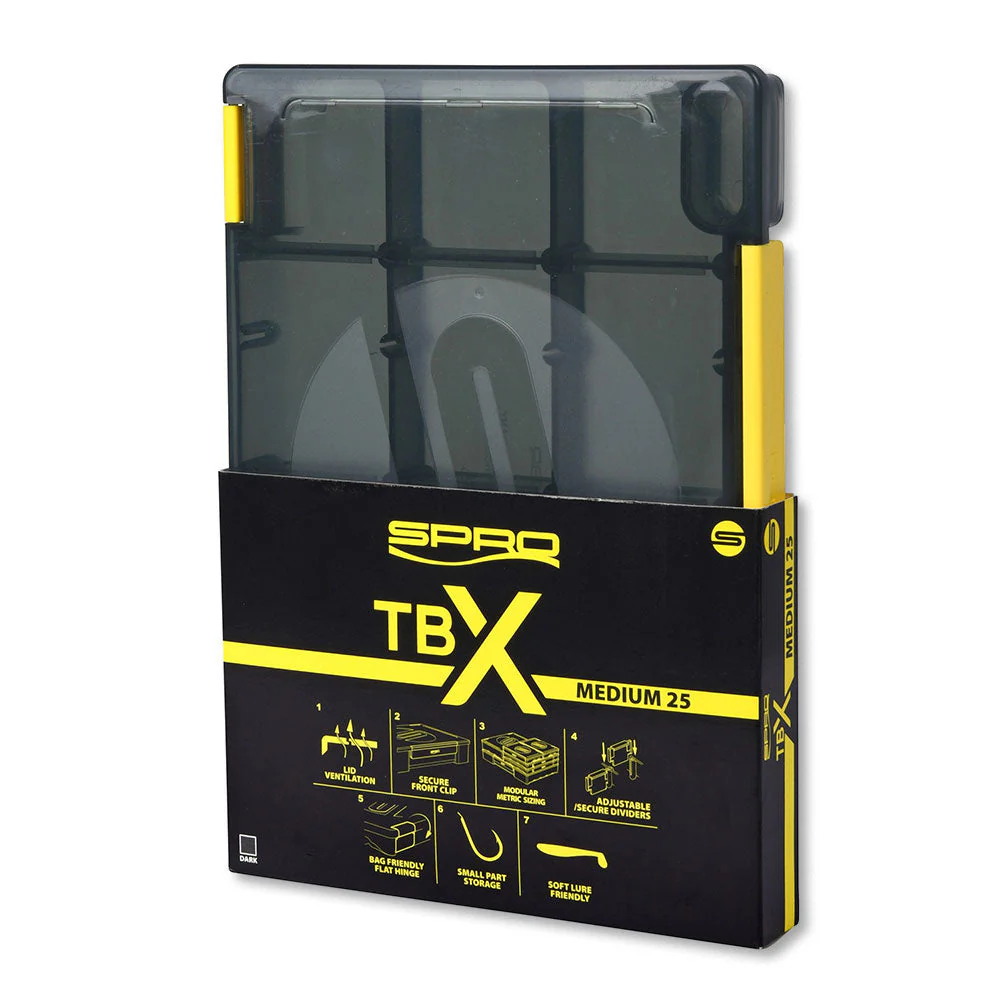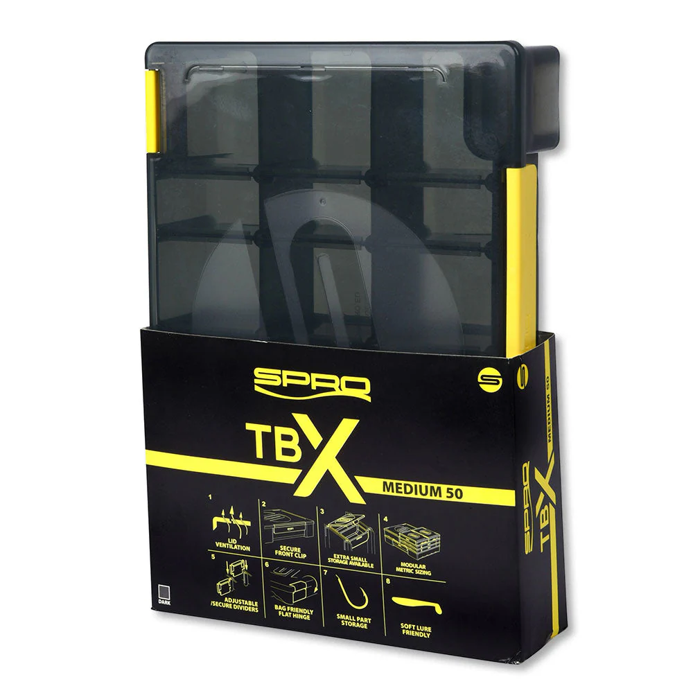 Die Spro TBX Tackle Boxen sind innovative Systemboxen, die in verschiedenen Größen erhältlich sind. Von Terminal Tackle bis Big Baits ist in dieser Serie für jeden die passende Box dabei. Und dank der modular metrischen Abmessungen der Boxen, gibt es für jede Tasche und Rucksack das passende Modell. Hergestellt werden die Boxen aus robustem und langlebigem Polypropylen, welches sich mit den meisten Gummiködern verträgt. Die frei verstellbaren Trennwände halten auch unter Belastung deine Köder und Zubehör sicher an Ort und Stelle. Im Deckel sind feine Belüftungsschlitze eingearbeitet, die verhindern, dass sich Kondenswasser bildet. So kannst du auch nasse Köder oder Zubehör in die Boxen legen, ohne dir Gedanken machen zu müssen. Bei den hochwertigen Scharnieren haben die Entwickler darauf geachtet, dass diese verdeckt sind. So wird ein Verkanten beim Einschub in deine Tasche oder Rucksack verhindert. Die einzelnen Modelle der Box sind mit unterschiedlichen Facheinteilungen versehen und für verschiedene Einsatzgebiete. Um dir den Überblick ein wenig zu erleichtern, führen wir dir nachfolgend noch einmal die Modelle der Spro TBX Tackle Boxen im Detail auf.