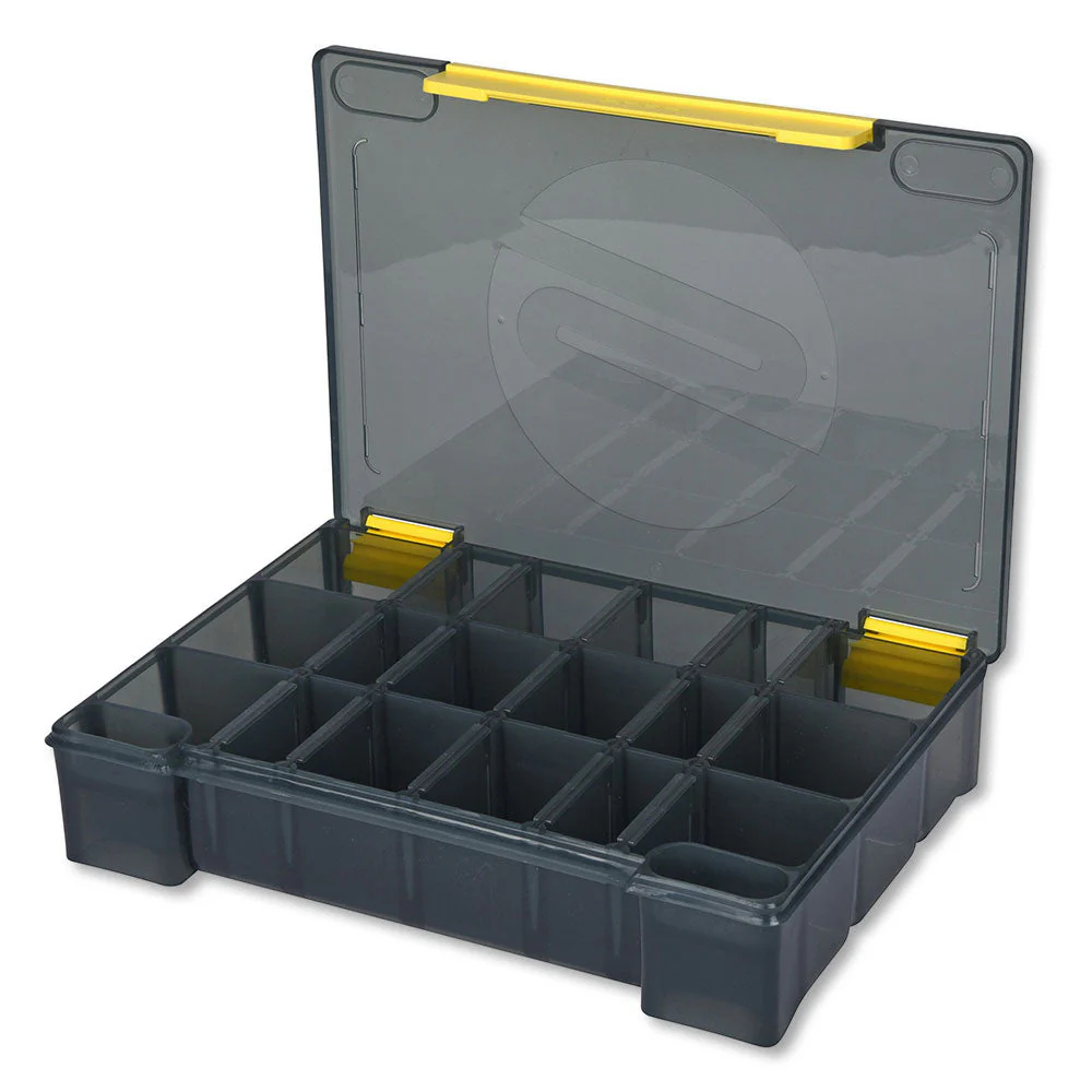 TBX S25: Eine kleine Box, die sich bestens für Terminal Tackle und Zubehör eignet. Sie verfügt über 13 Trennwände und 4 fest installierte Fächer für weitere Kleinteile.