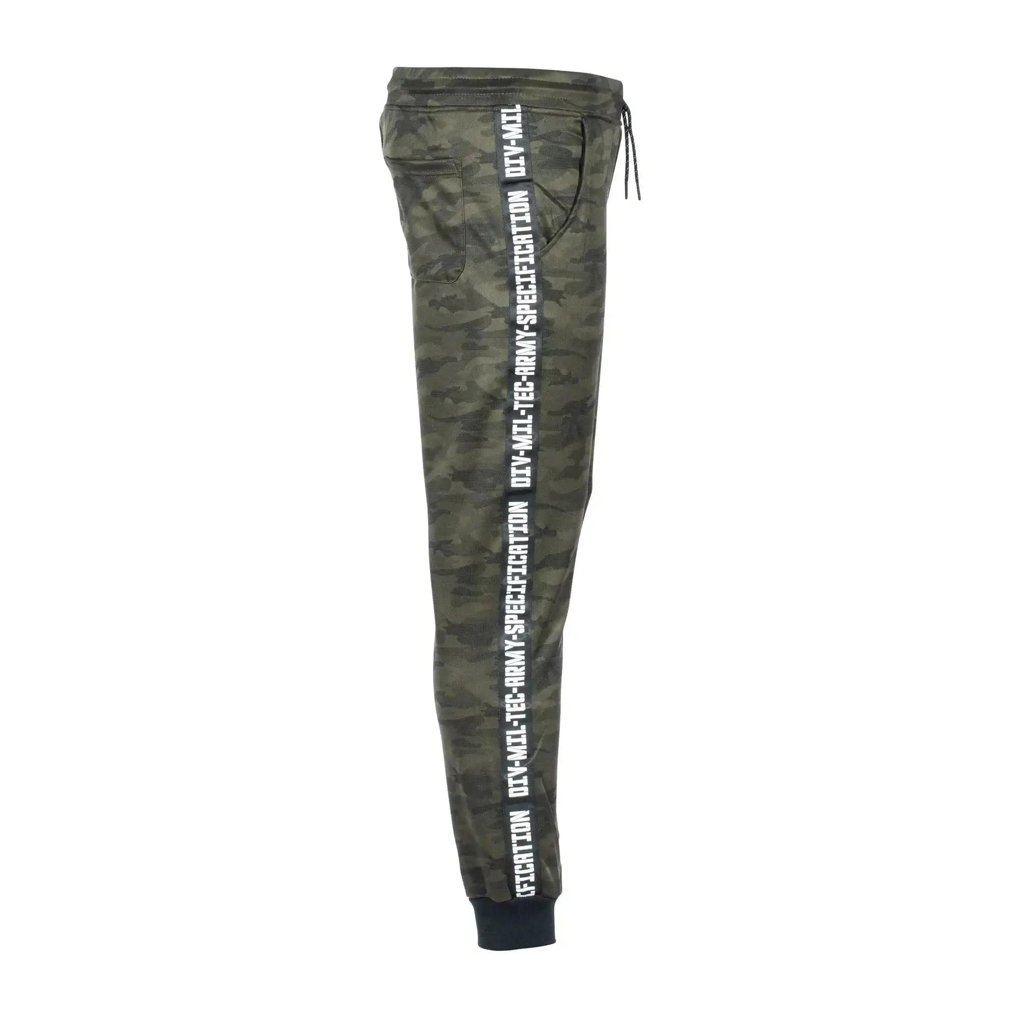 Die Mil-Tec Trainingshose ist äußerst bequem. Der seitliche Streifen mit Schriftzug „Div-Mil-Tec-Army-Specification“ wertet die Hose optisch auf. Ebenso verfügt sie zum Verstauen persönlicher Gegenstände über zwei Schubtaschen und eine Gesäßtasche. Der breite, elastische Bund kann mit Kordelzug angepasst werden.