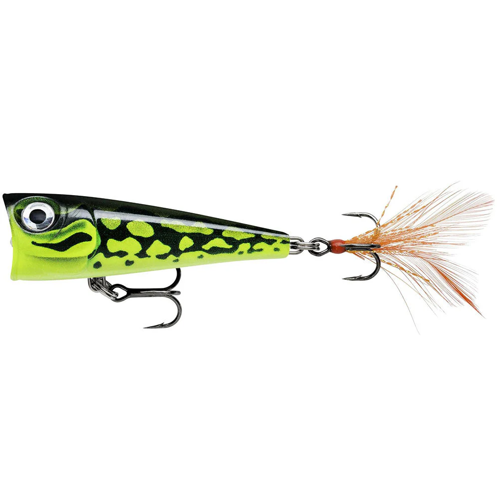 Auch wenn der Rapala X-Light Pop mit 4 cm und 4,5 g ein kleiner Ultra Light Popper ist, der Sound hat es in sich. Mit einer lauten Popping Action arbeitet er sich den Weg zurück an der Oberfläche und lässt die Räuber vehement zuschlagen. Unterstützt wird der Sound noch von den integrierten Rasseln, die das akustische Werk vollenden. Optisch weiß er mit tollen Dekoren und einem verführerischen Feder-Schwanzdrilling ebenfalls zu überzeugen. Obwohl er wenig wiegt, lässt er sich dank des aerodynamischen Designs sehr gut werfen. Ein toller Topwater Köder für die Ultra Light Rute und ein Garant für spektakuläre Bisse.